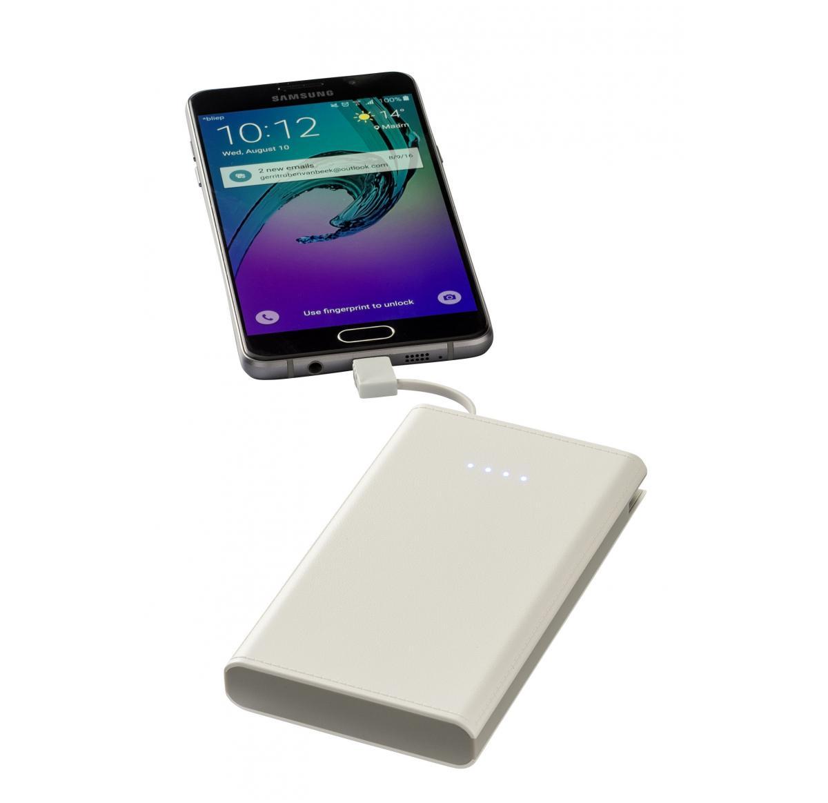 Stylish flat powerbank with a capacity of 8000 mAh, input 5V/1.5A, output 5V/2A, battery power level indicator and leather material finish. The design makes this item ideally suitable for digital printing, to give your powerbank an even greater exposure. Produced at a SMETA 4 Pillar factory and passing all required product compliance test, this is one of the safest powerbanks on the planet. Including built-in micro-usb charging cable.
