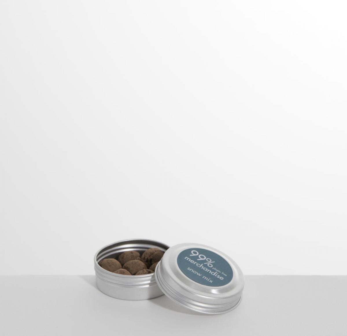Snowy white scented flowers for festive promotions. Recyclable aluminium pot with a small handful of innovative seedballs. Seedballs are incredibly easy to use - simply scatter on top of soil or compost (no digging or expertise required!) and nature will do the rest. Re-use your empty branded pot for mini bits and bobs on-the-go or simply recycle to be turned into a new aluminium product. Full colour digital printing on 25mm label to lid.