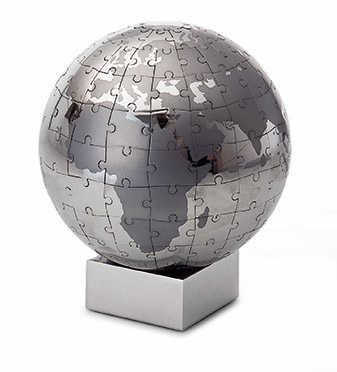 Philippi - Extra Large Extravaganza puzzle globe XL, Stainless Steel, chrome-plated, 12cm dia. Also available in 30cm diameter - call for price.