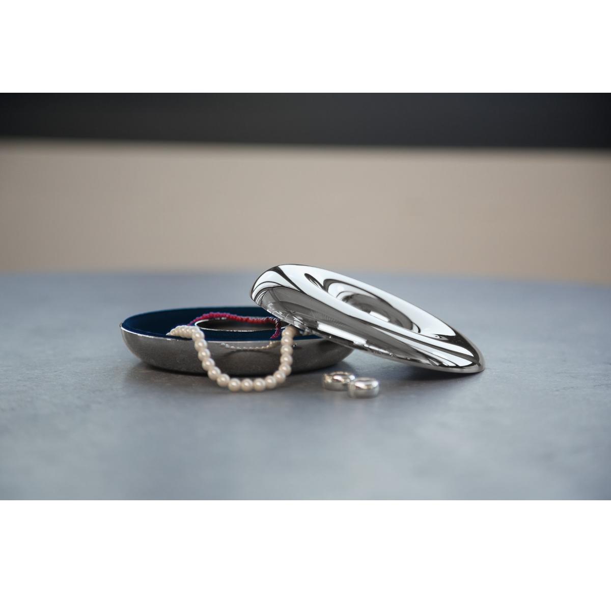 Philippi - Diana jewellery box, Shiny nickel plated, felt blue, Gift boxed.