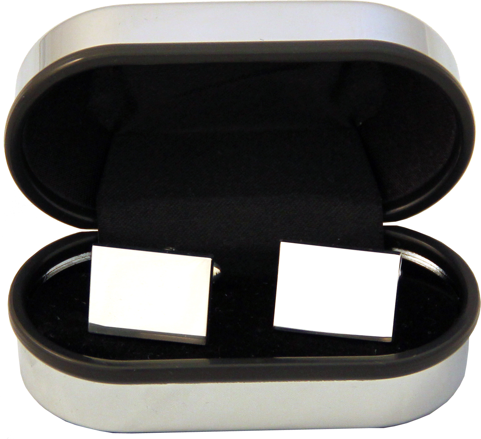 Promotional Executive Rectangular Cuff Links Rhodium Plated In Silver Chrome Silver Box.