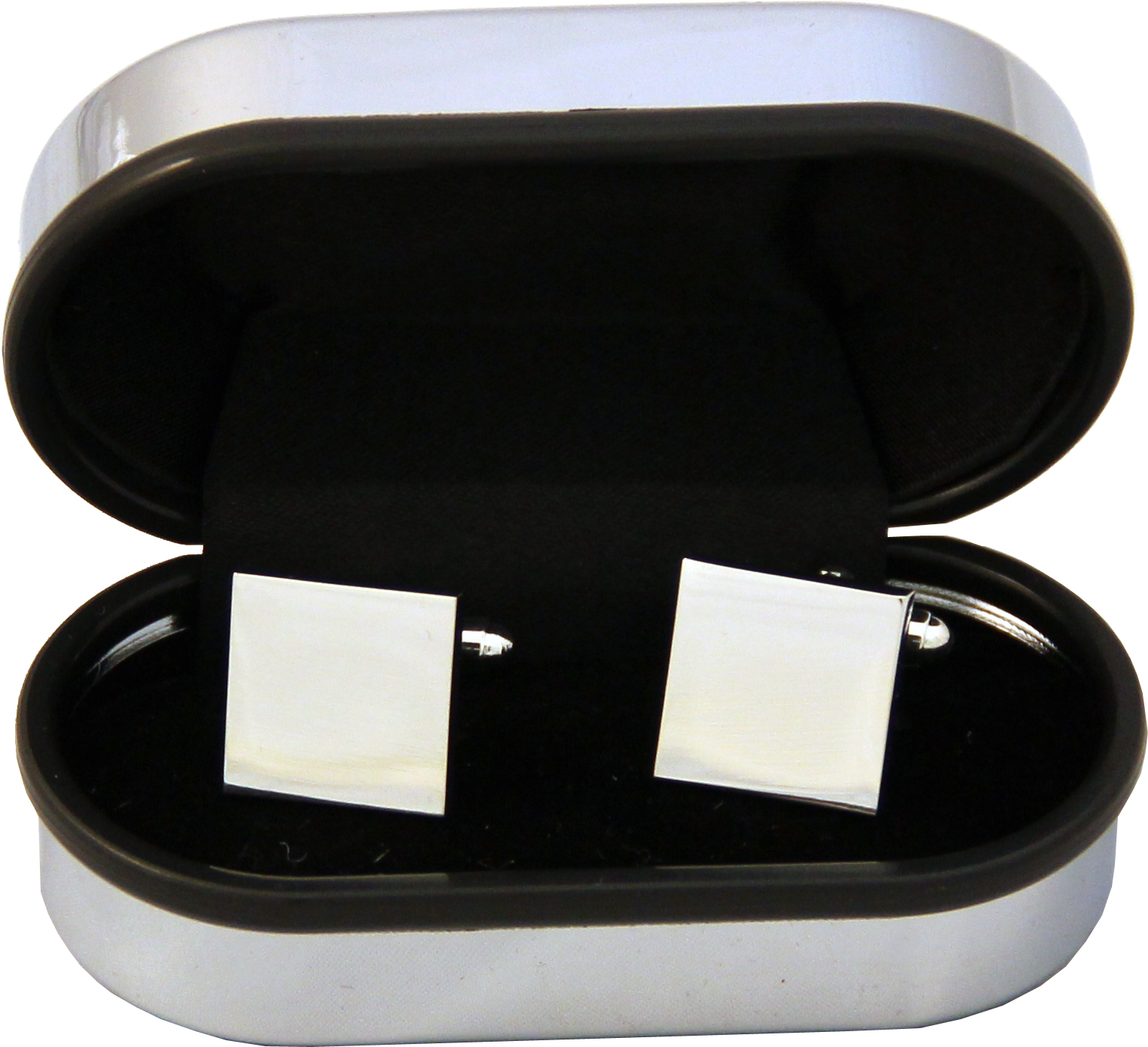 Laser Engraved Square Cuff Links Rhodium Plated In Chrome Cufflink Case