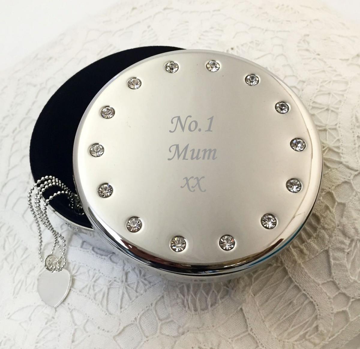 Promotional Executive Ladies Crystal Jewellery Box. Ladies Silver Plated Metal With Crystals. Gift Boxed.