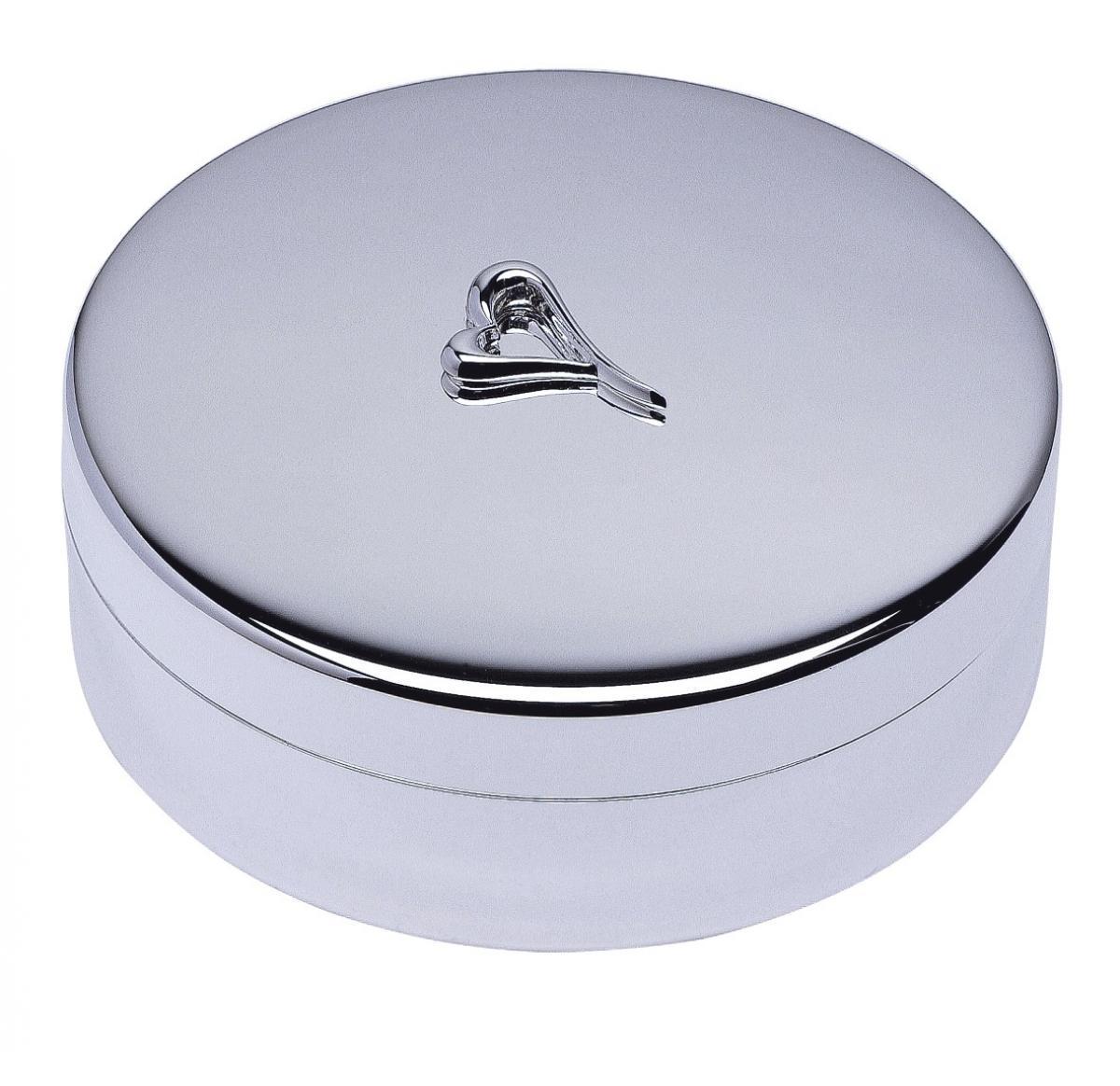 Promotional Executive Ladies Round Heart Jewellery Box In Silver Plated Metal Finish. Gift Boxed.
