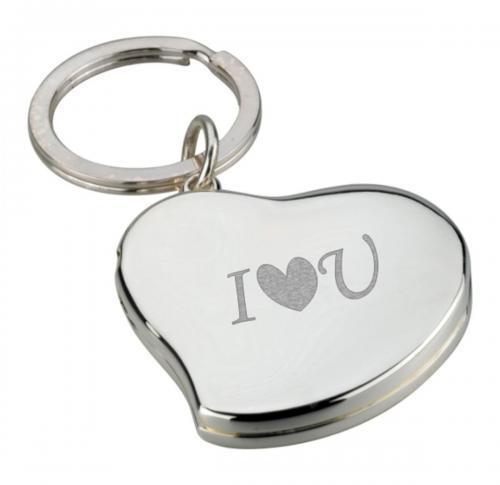 Promotional Executive Ladies Heart Double Photo Frame Keyring In Silver Plated Metal Finish. Gift Boxed.