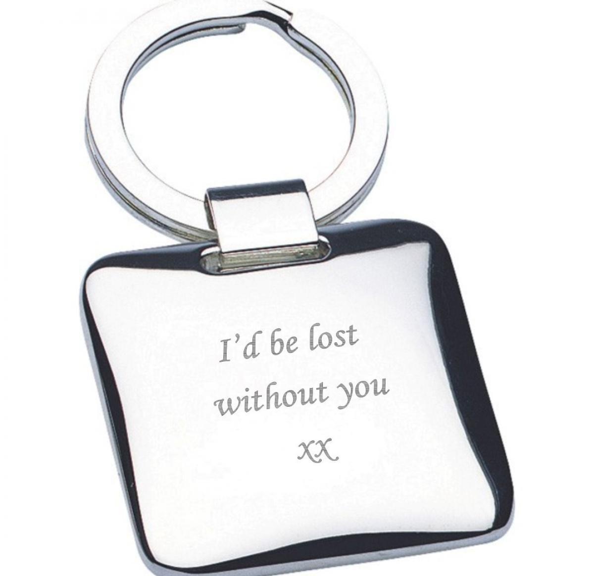 Promotional Executive Metal Square Cushion Keyring In Nickel Plated Finish. Gift Boxed.