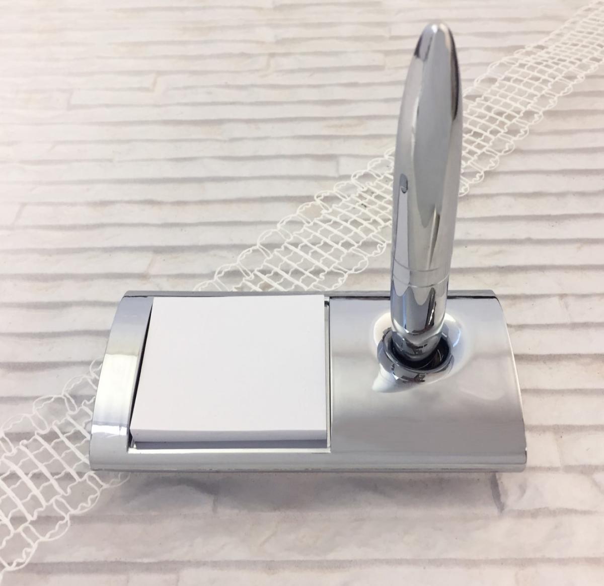 Promotional Executive Floating Pen & Post It Pad In Silver Finish.