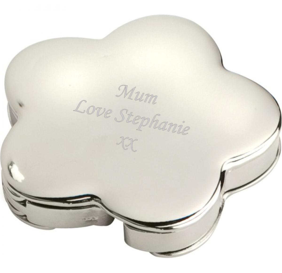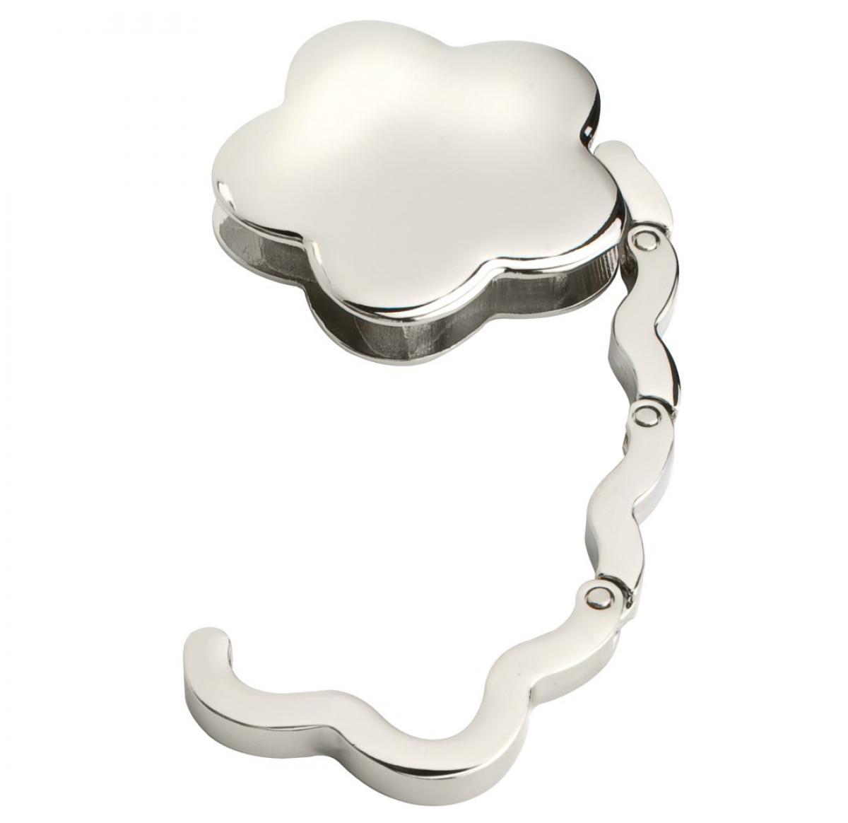 Flower shaped handbag hook, just extend and position at the edge of your table or desk, chromed metal, gift boxed.