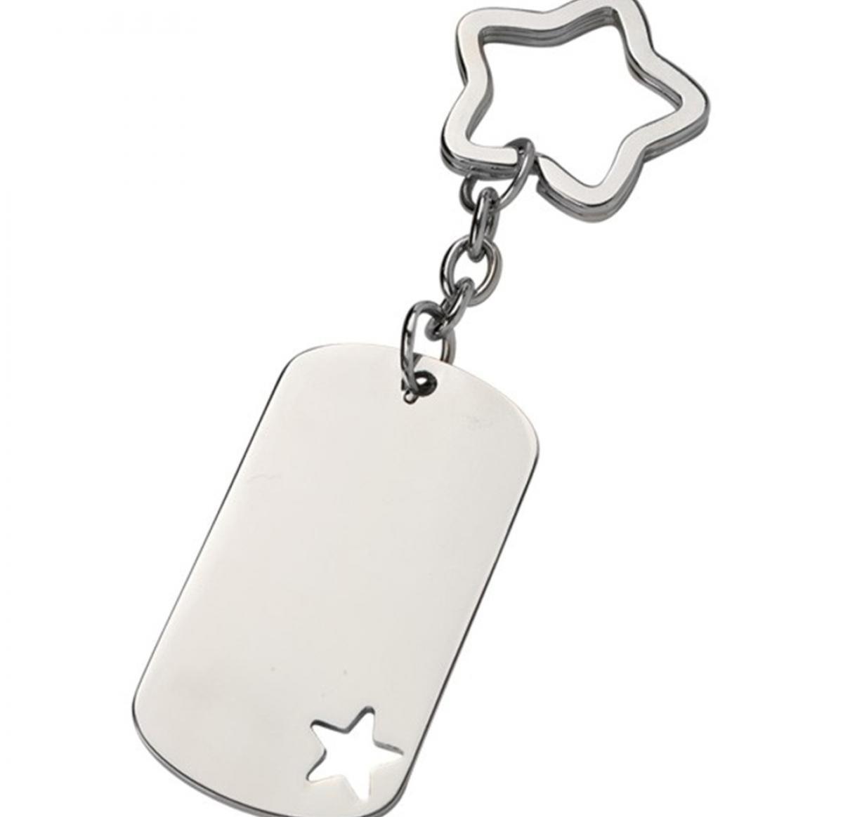 Star Keyring - ID tag style keyring with cut-out star, chromed metal