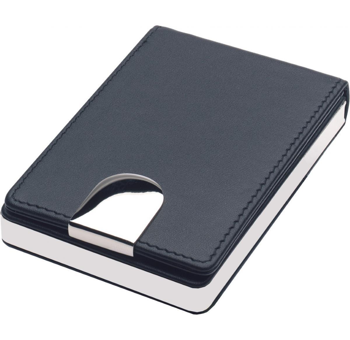 Geneva Business Card Pocket Holder In Silver Plated Metal & Soft Black Leather. Giftboxed.