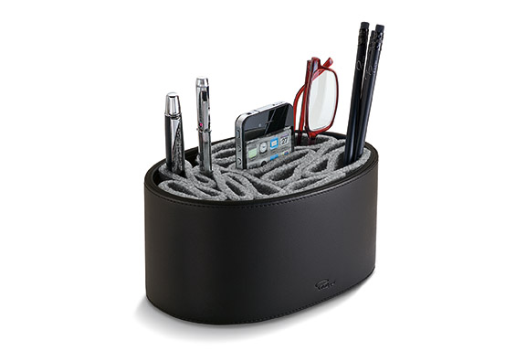 Philippi - Giorgio utility box Desk Tidy, Leather, black, with grey felt inner. Giftboxed.