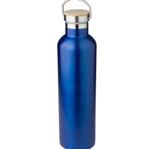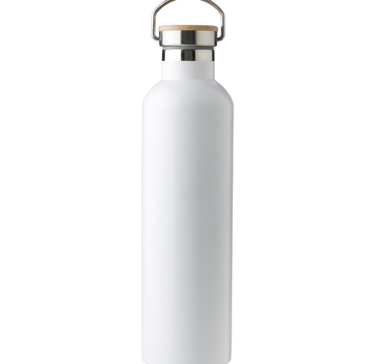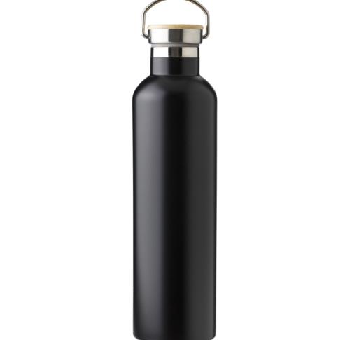 Stainless steel bottle, 1 litre featuring a double-walled design for excellent insulation. The carrying lid and bamboo detail add elegance to this practical and stylish accessory. Stay hydrated in style with this eco-friendly and durable bottle.