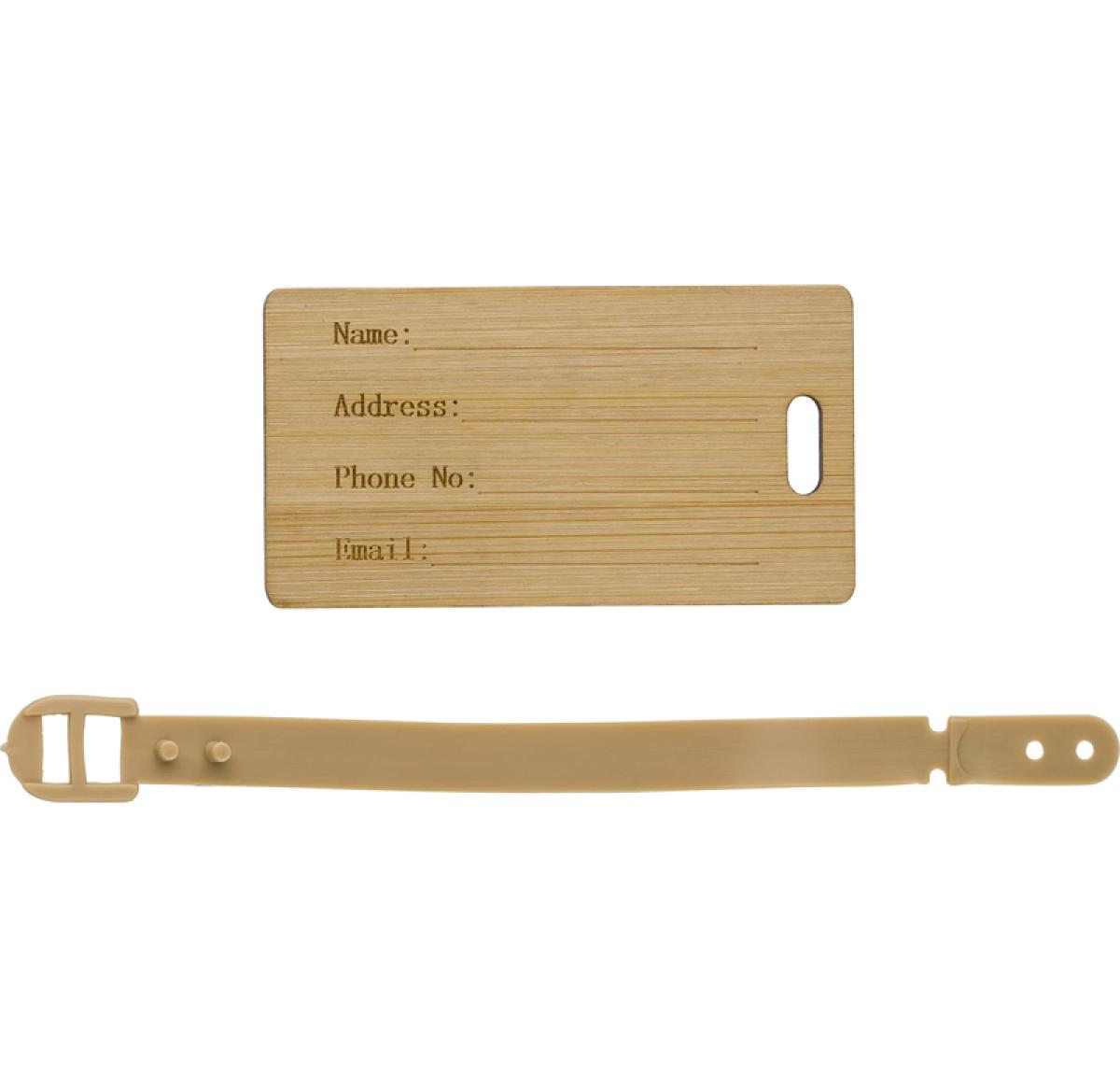 Bamboo luggage tag, a sustainable and stylish choice. It comes with a PVC strap for easy attachment to your luggage. Upgrade your travel accessories with this eco-friendly and elegant tag.