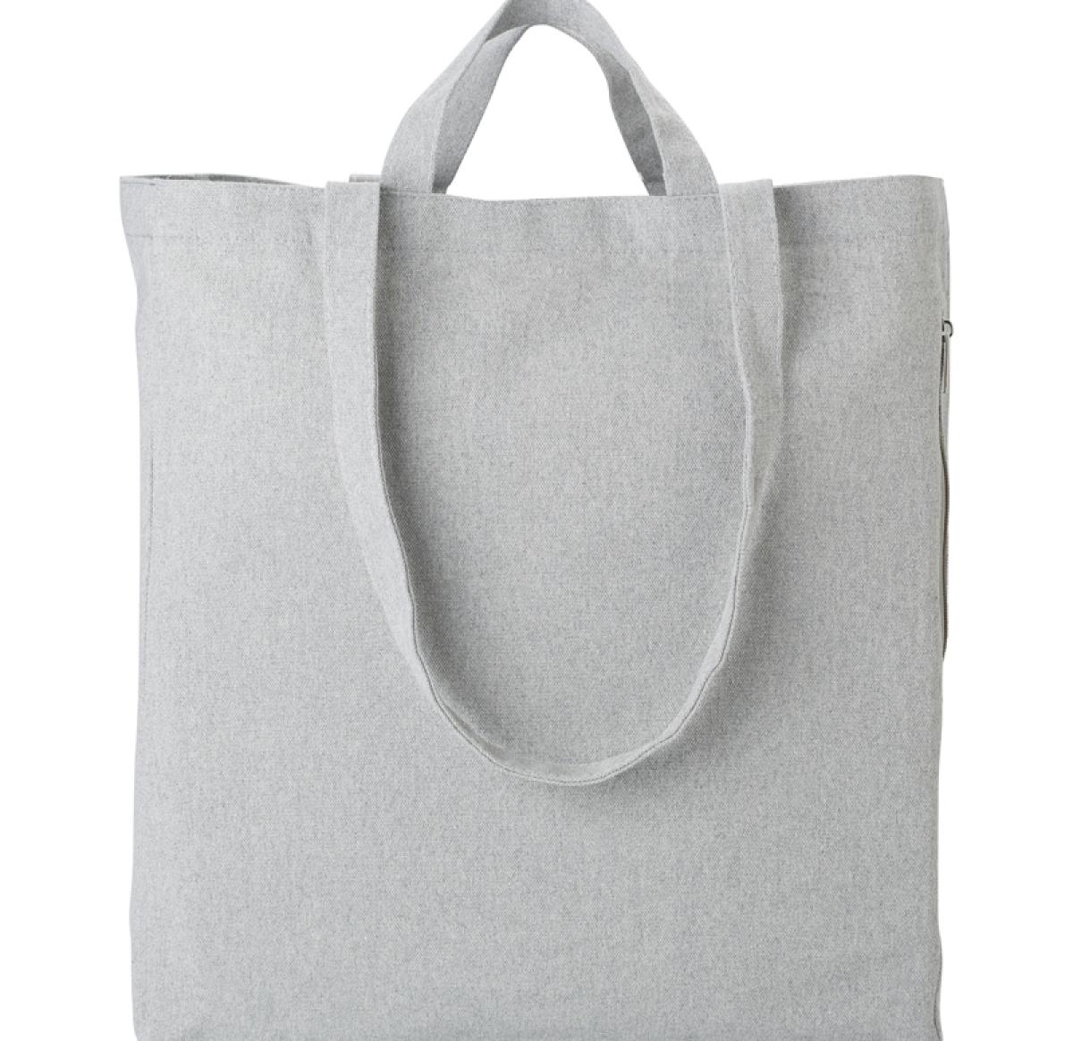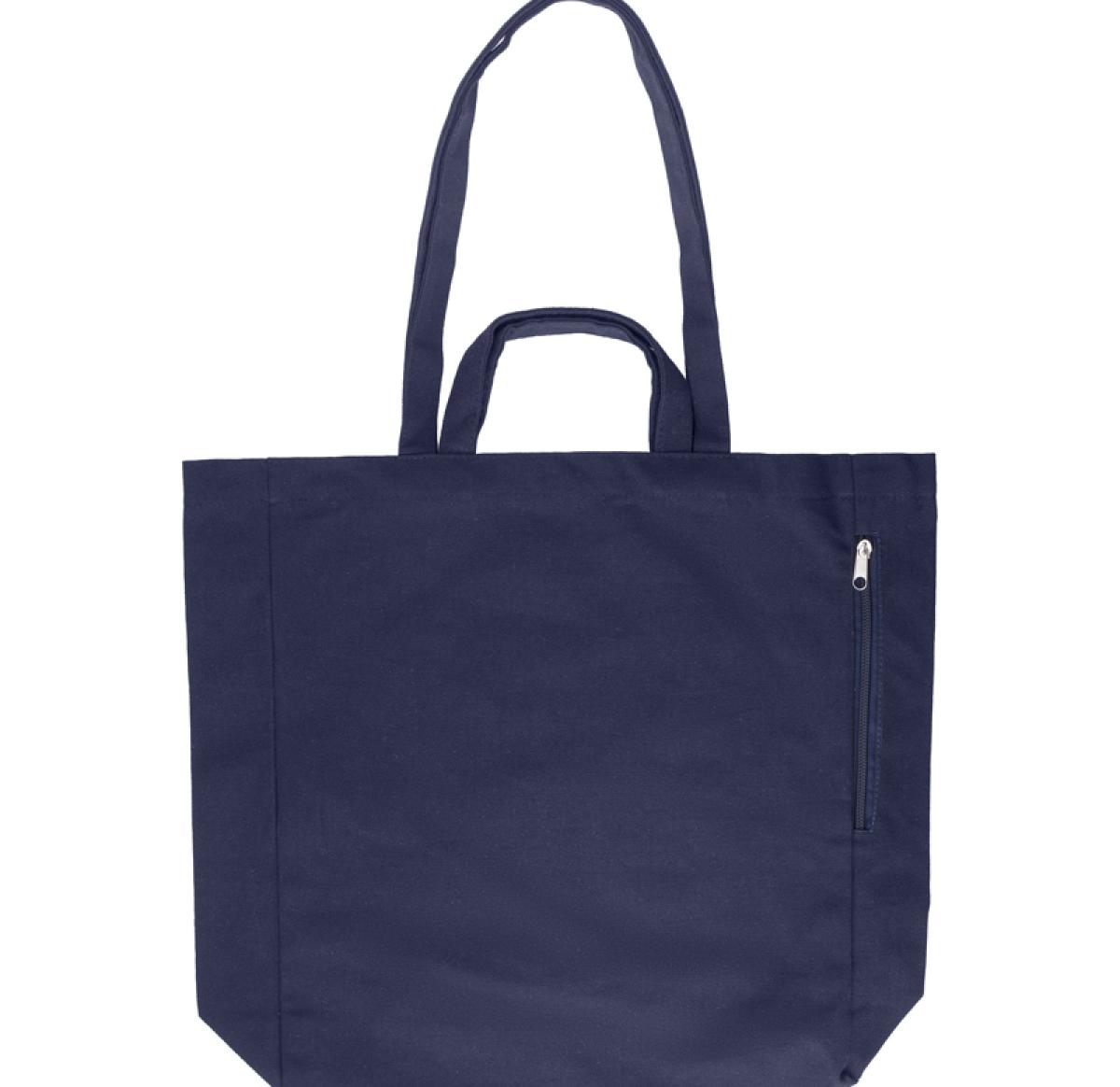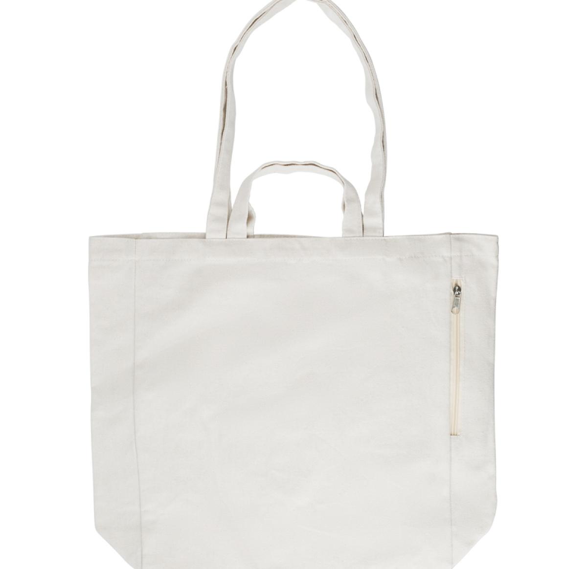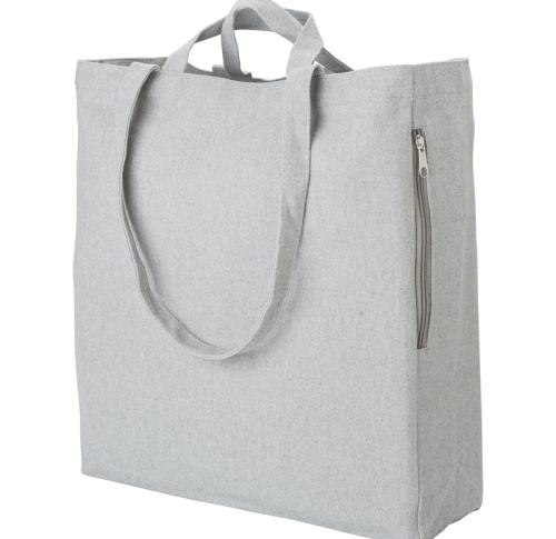 Introducing our recycled cotton shopping bag, a sustainable choice with short and long handles. It features a convenient side pocket with a zipper for securing small items. Embrace eco-friendly shopping with this versatile and stylish bag.