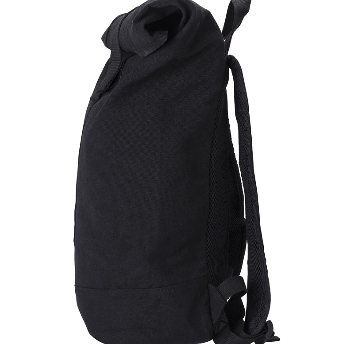 Introducing our polyester roll top backpack, a stylish and eco-friendly choice. The roll-top design with Velcro closing allows for easy access, while the 340 grams canvas and 210D RPET lining ensure durability. The mesh backing provides comfort, and the RPET PU base adds extra protection. Stay sustainable and stylish with this versatile backpack.