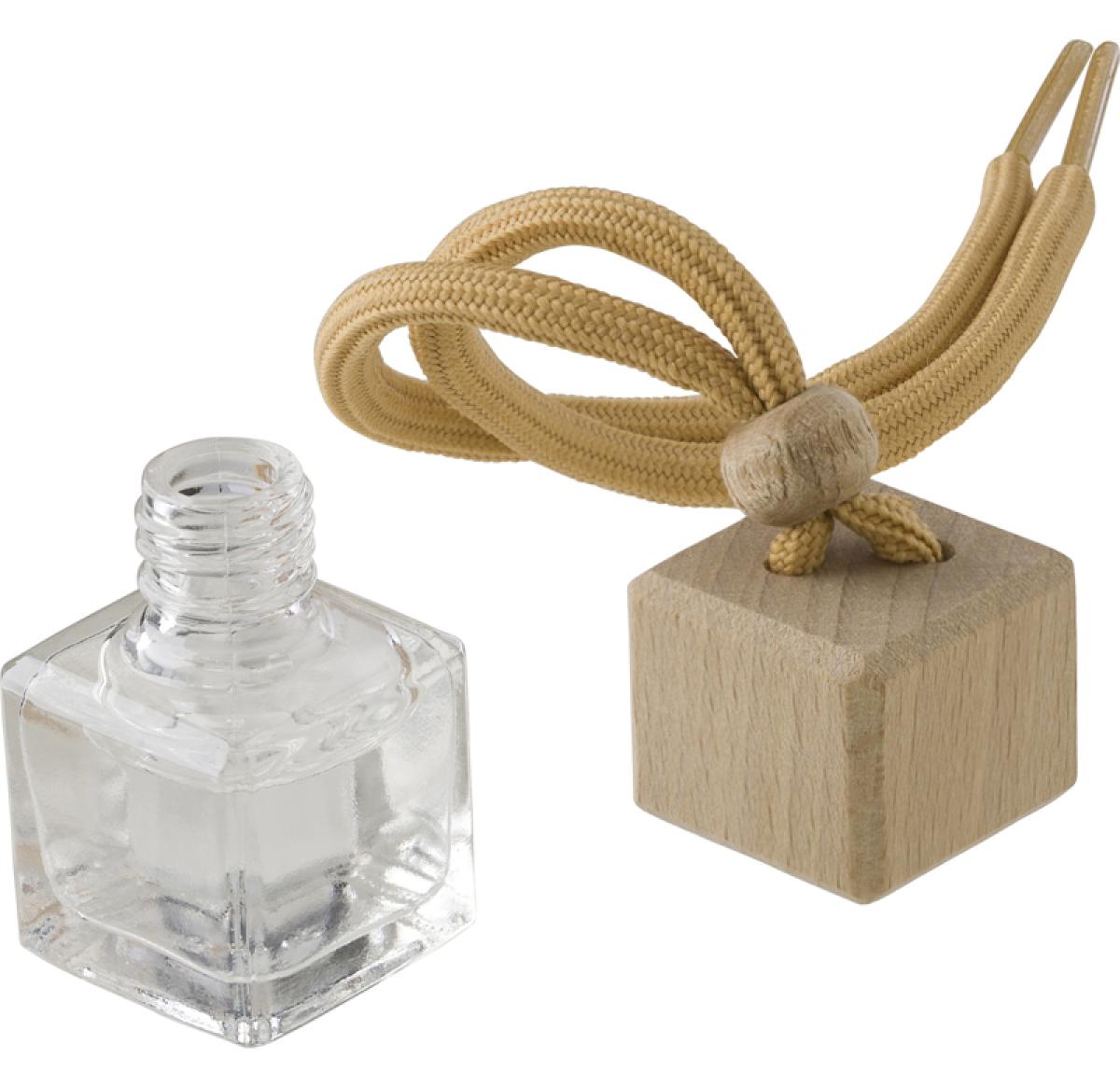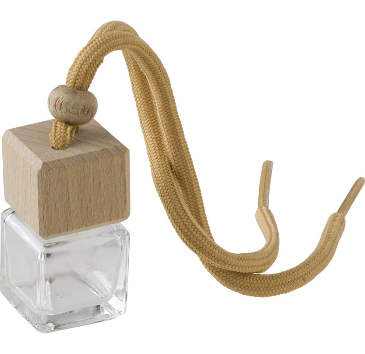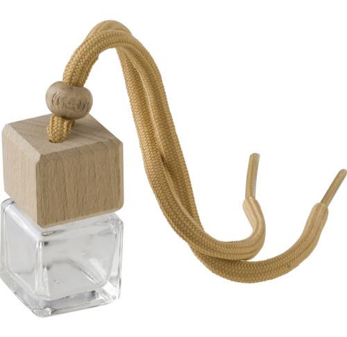 Glass refillable car air freshener, featuring a beechwood lid and a polyester rope for easy hanging. Enjoy the delightful "new car" scent without alcohol, making it a sustainable choice for keeping your car fresh and inviting. Please note that the refill is not included