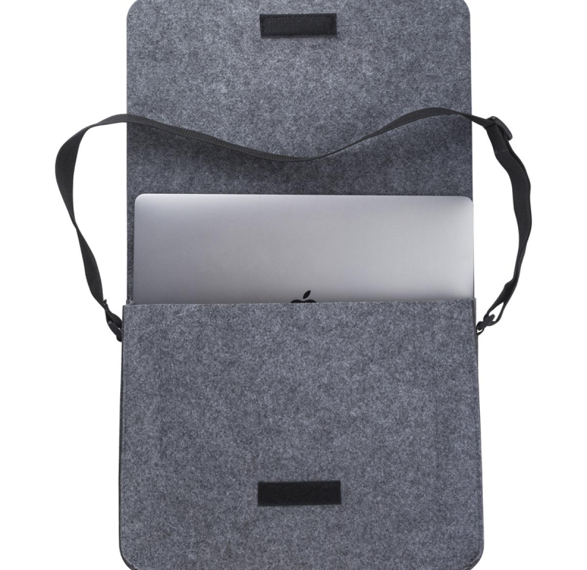 The RPET felt laptop backpack is specifically designed to accommodate a 15-inch laptop. It features a Velcro closing mechanism, ensuring easy and secure access to your laptop and other belongings. The backpack is made from eco-friendly RPET felt material, making it a sustainable choice. For added convenience and comfort, the backpack is equipped with an adjustable shoulder strap, allowing you to find the perfect fit for your carrying preferences.