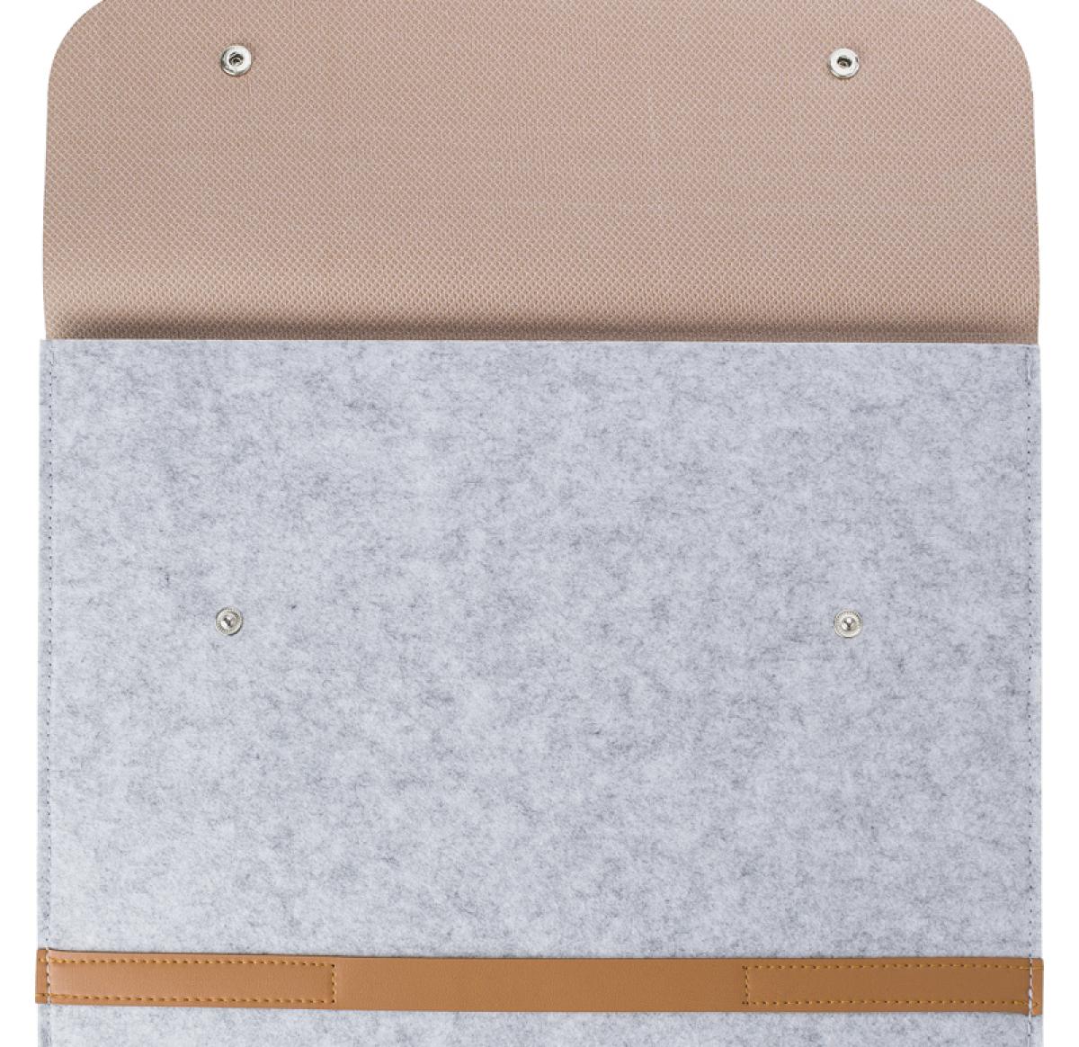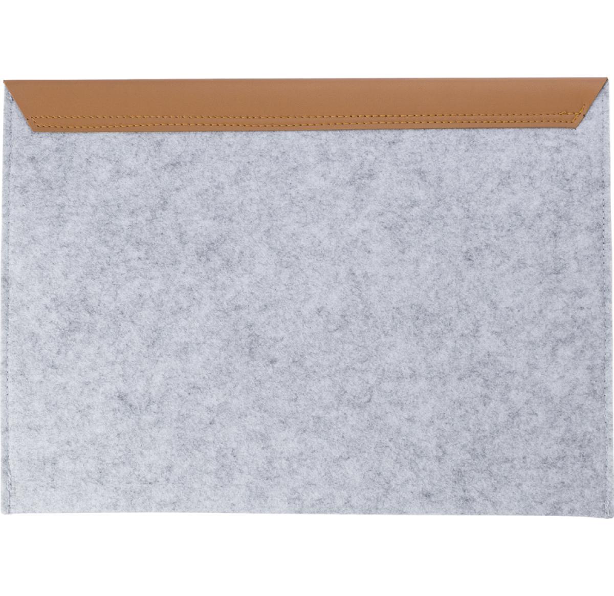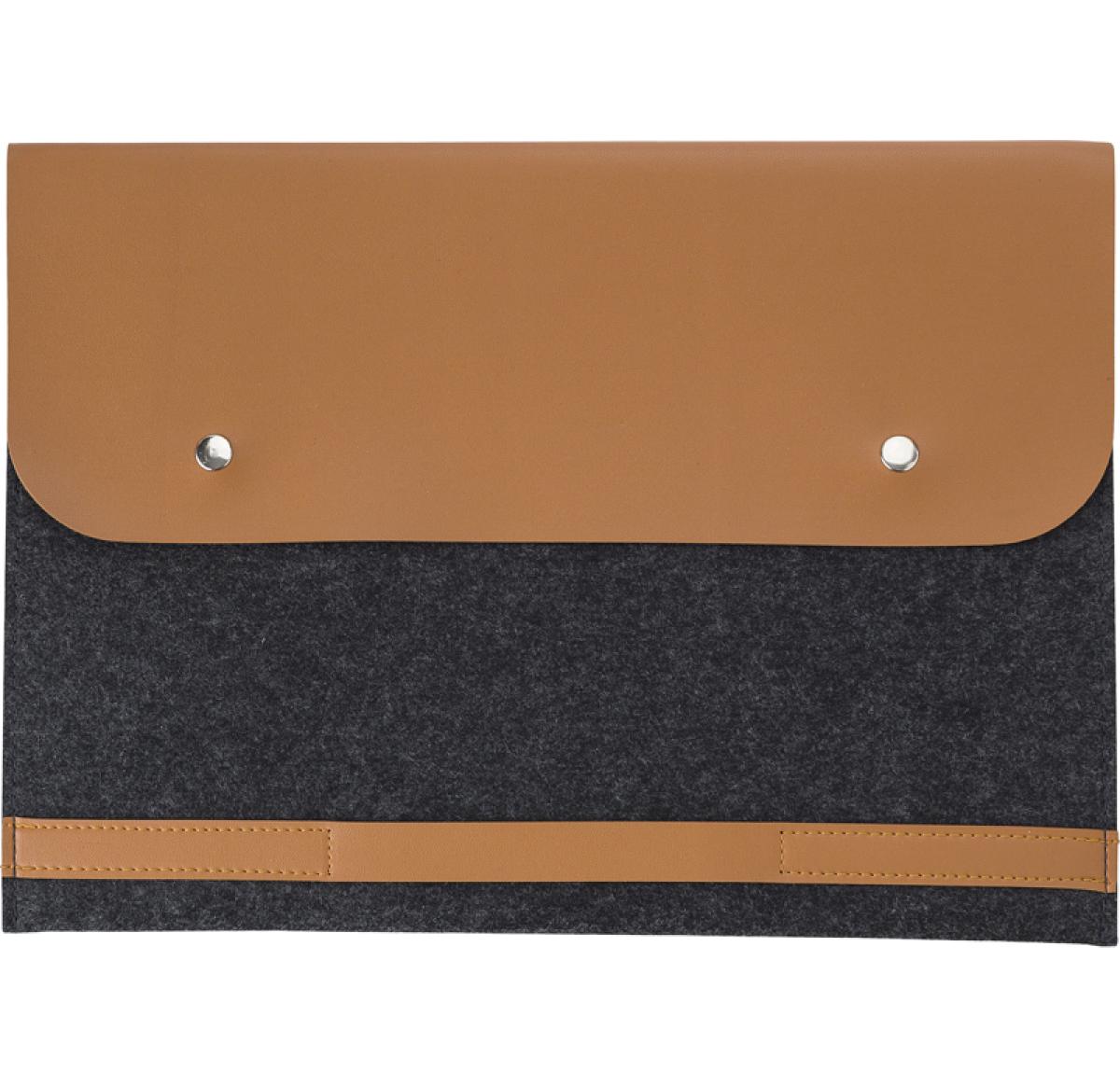 RPET felt laptop pouch - a sustainable and stylish choice for 14-inch laptops. With PU details and two buttons for secure closure. Carry your laptop responsibly and fashionably.