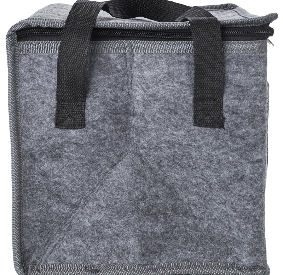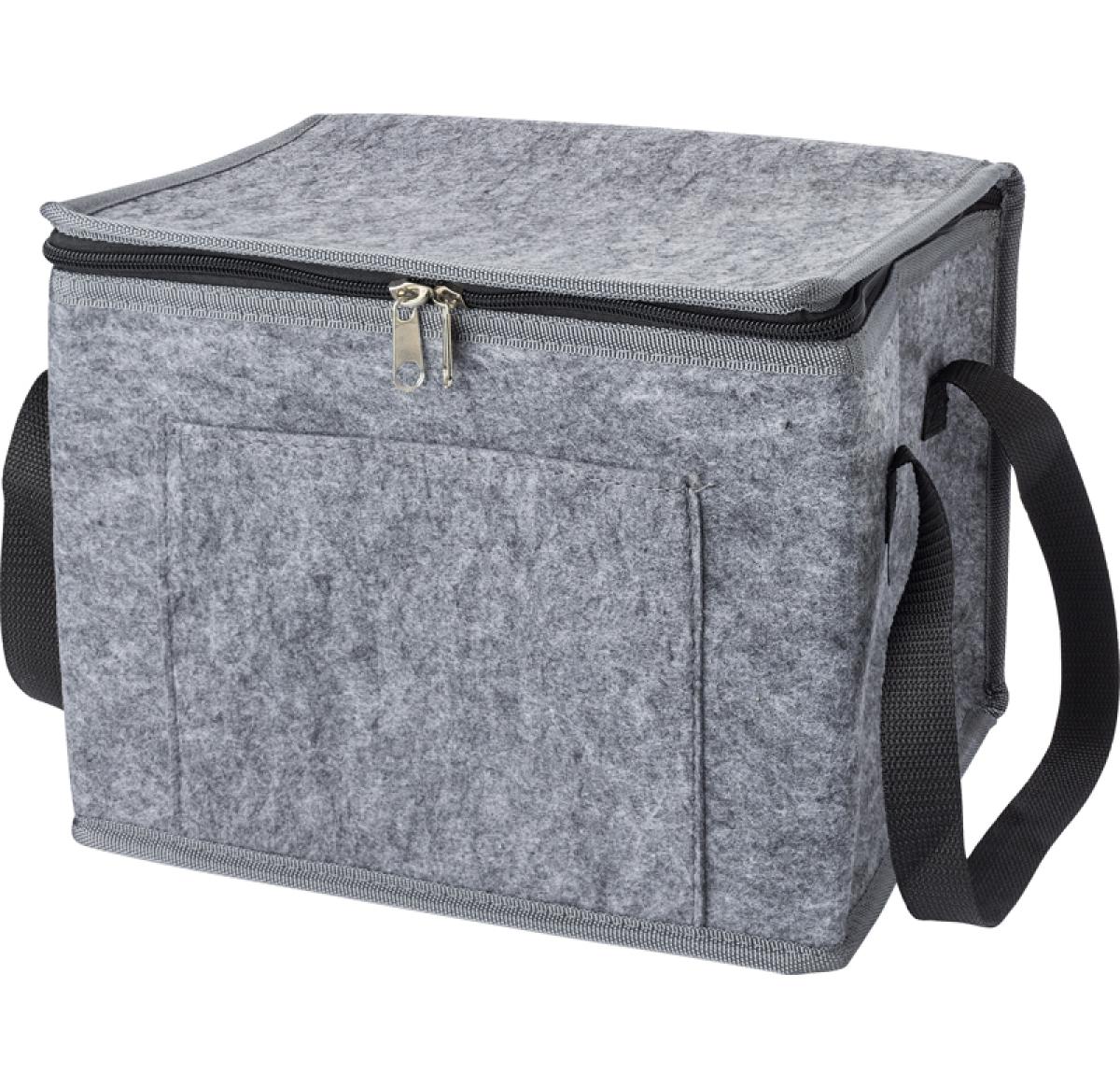 RPET felt cooler bag - your eco-friendly and stylish companion for keeping drinks and snacks cool. With an aluminium foil interior and a front pocket, it's perfect for all your outings and adventures. Stay cool and sustainable!