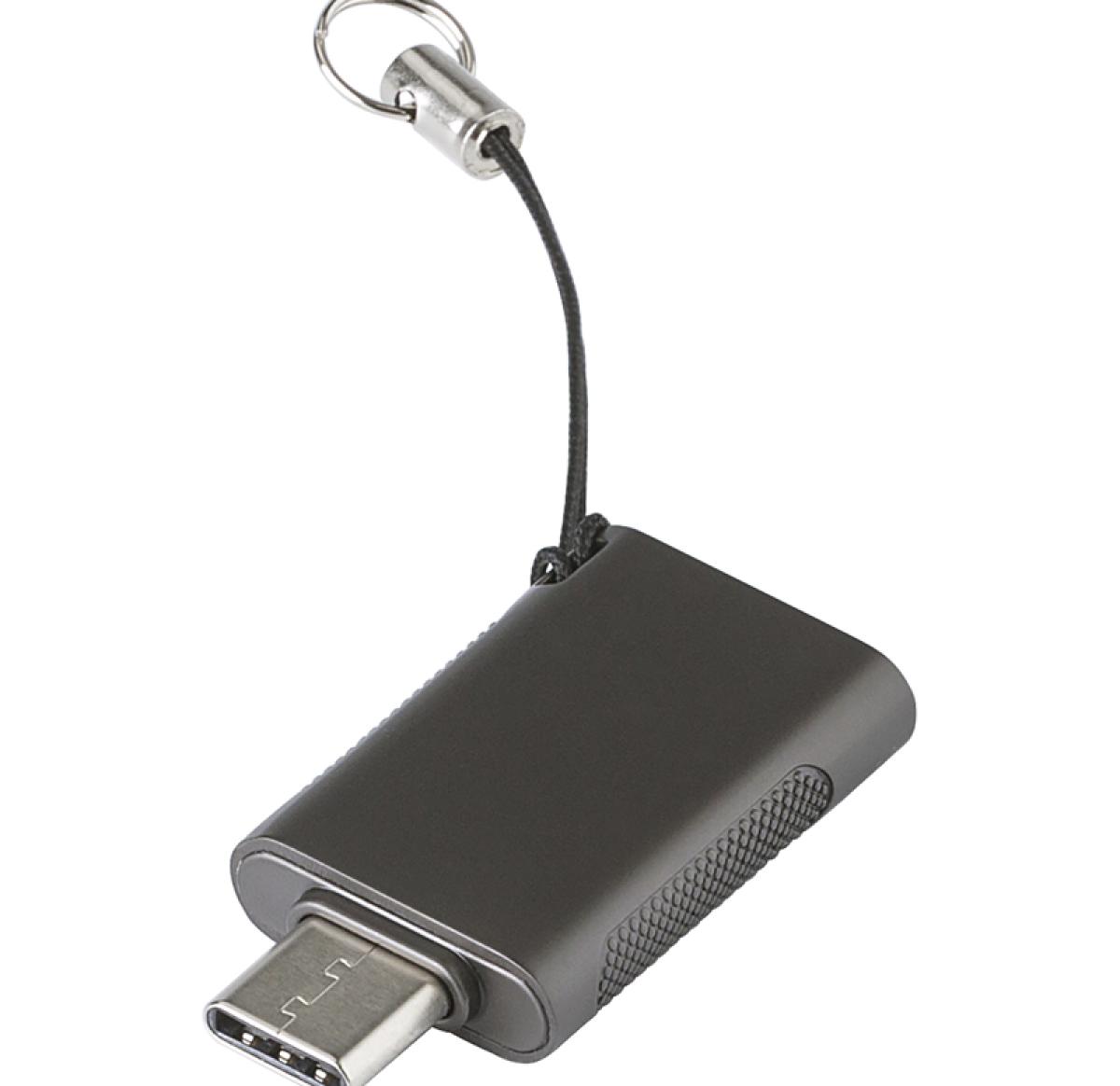 Zinc alloy USB stick, 64gb in a graphite matt finish with a twist action function for USB-A and USB-C. Individually packaged in a metal case.