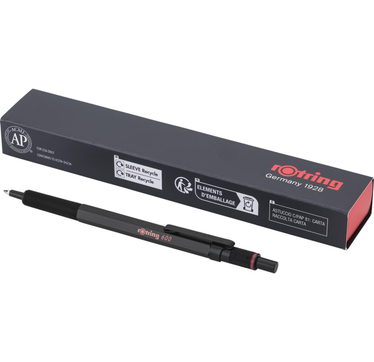 The Rotring 600 is a sleek, metal ballpoint pen built with precision and convenience in mind. The ergonomic metal barrel is an ideal balance of weight and feeling. The hexagonal barrel ensuring fatigue-free writing and drawing.