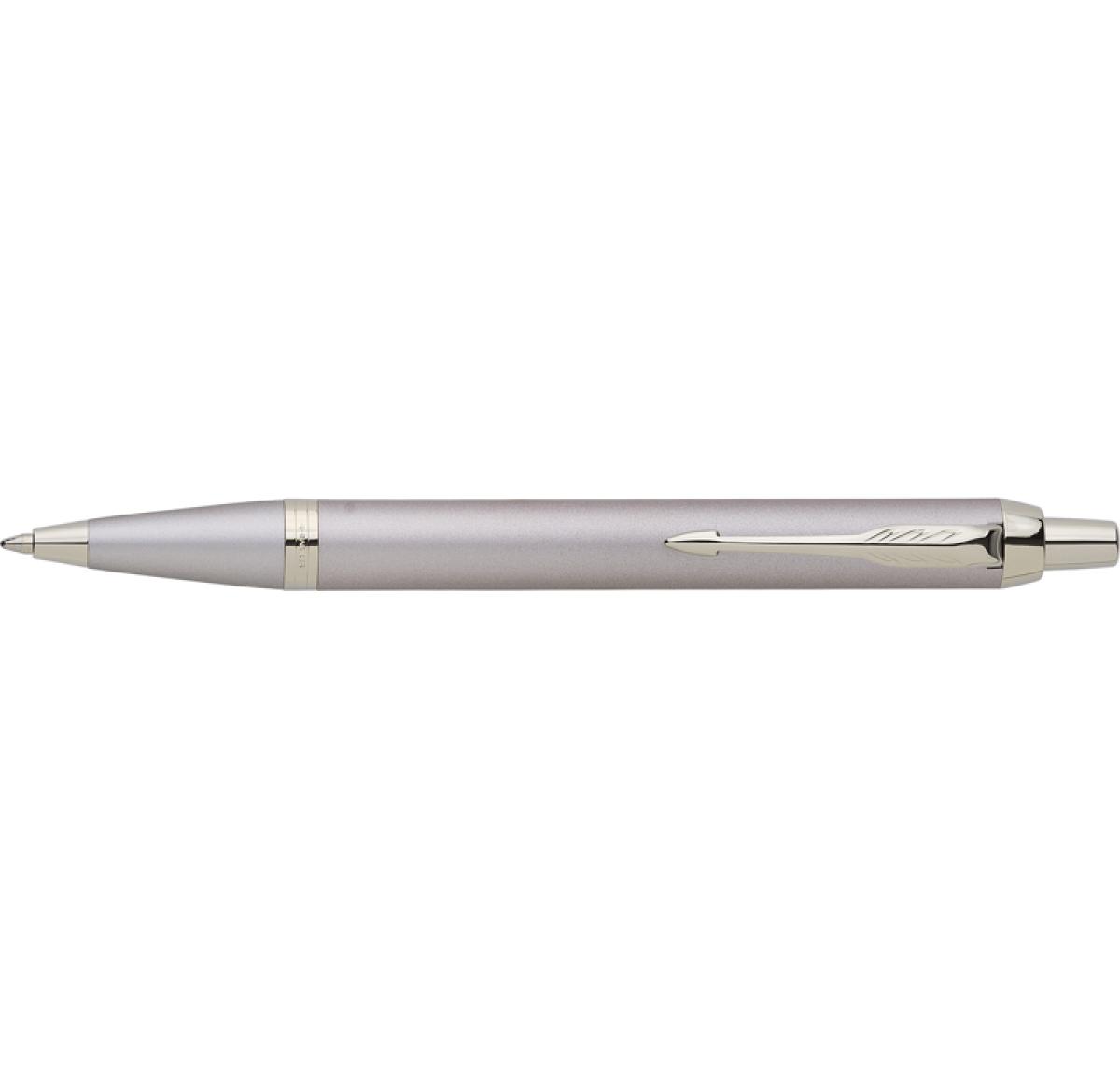 Parker IM Monochrome PVD ballpoint pen with click mechanism and blue ink. Including giftbox.