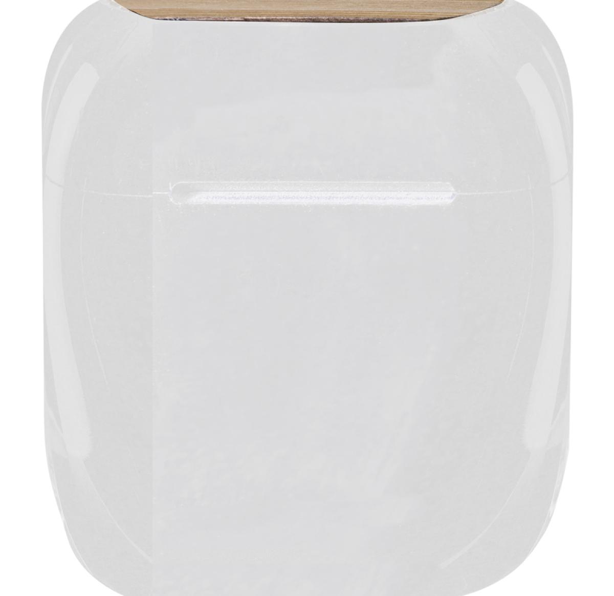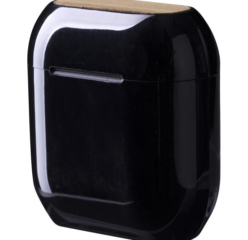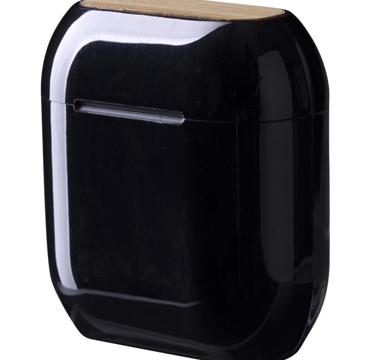 Earphones with wireless technology (5.1) supplied in a matching flip top case with bamboo inlay. Technical: Earphones 30 mAh, case 200 mAh. Fully charged in 1 hour, USB-C charger. Battery life: 6 hours of music play time, 4 hours of calling time.