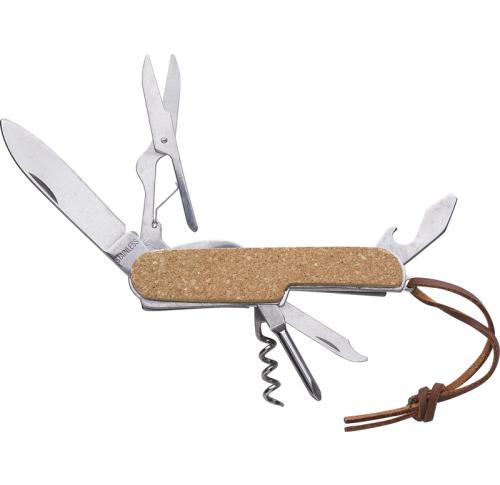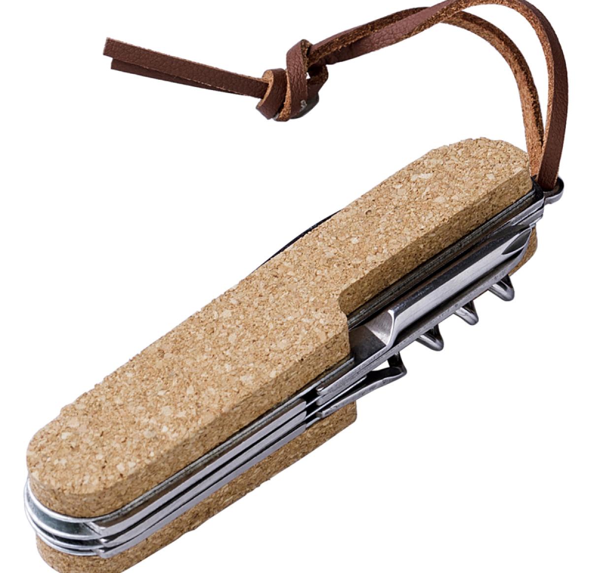 Multi-tool, 7pc with cork casing and a PU wristband. Individually packaged in a brown cardboard box.