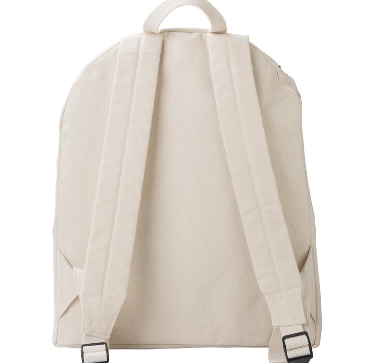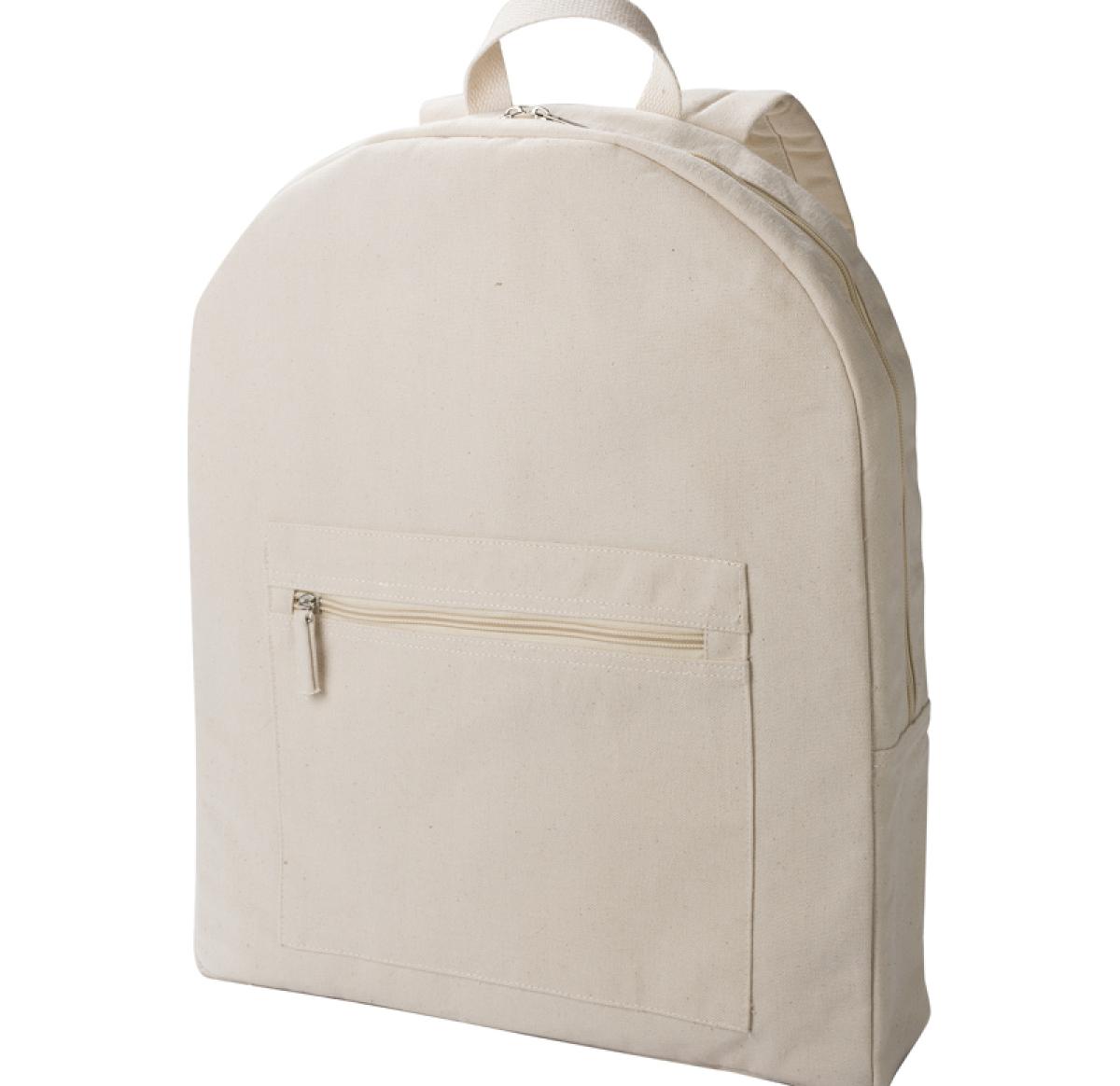 Natural cotton backpack with adjustable shoulder straps. Features a main zipped compartment and a front zipped pocket. 320 g/11.2oz
