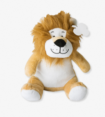 Plush lion with embroidered eyes. Combines with T-shirt item 5013. Also includes a tag for printing purposes.