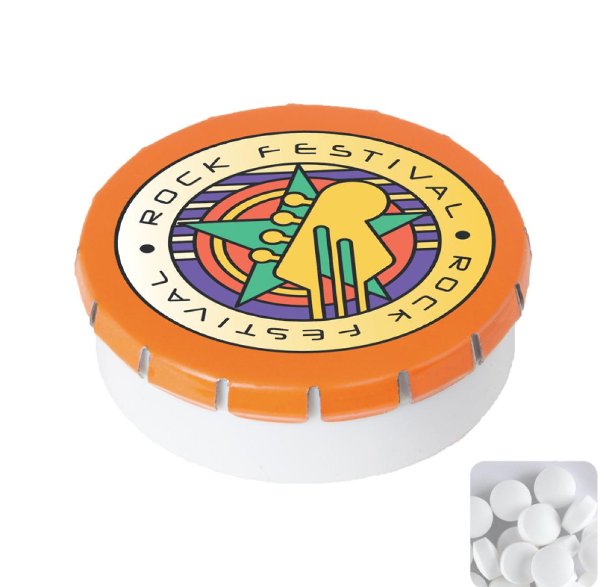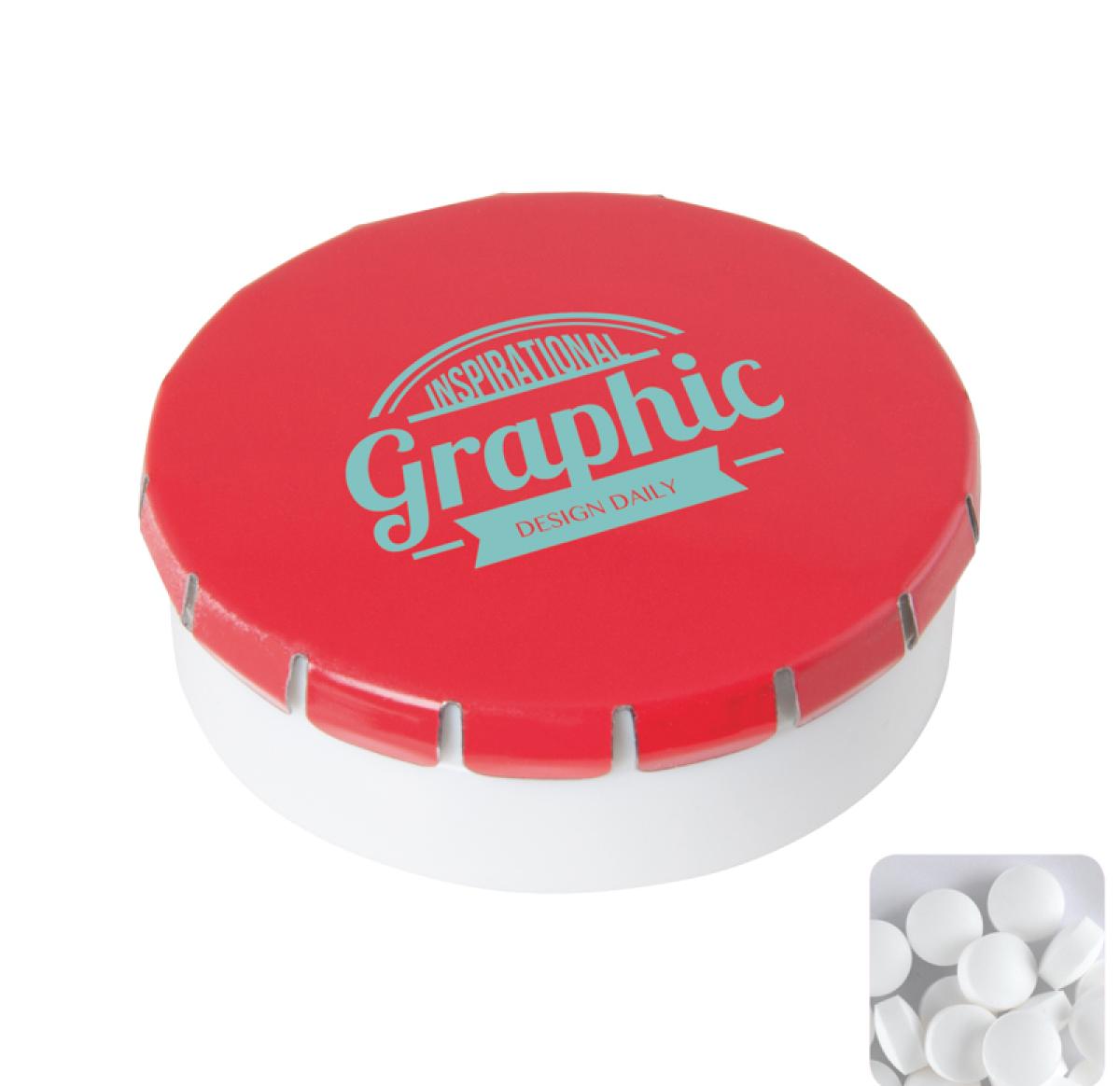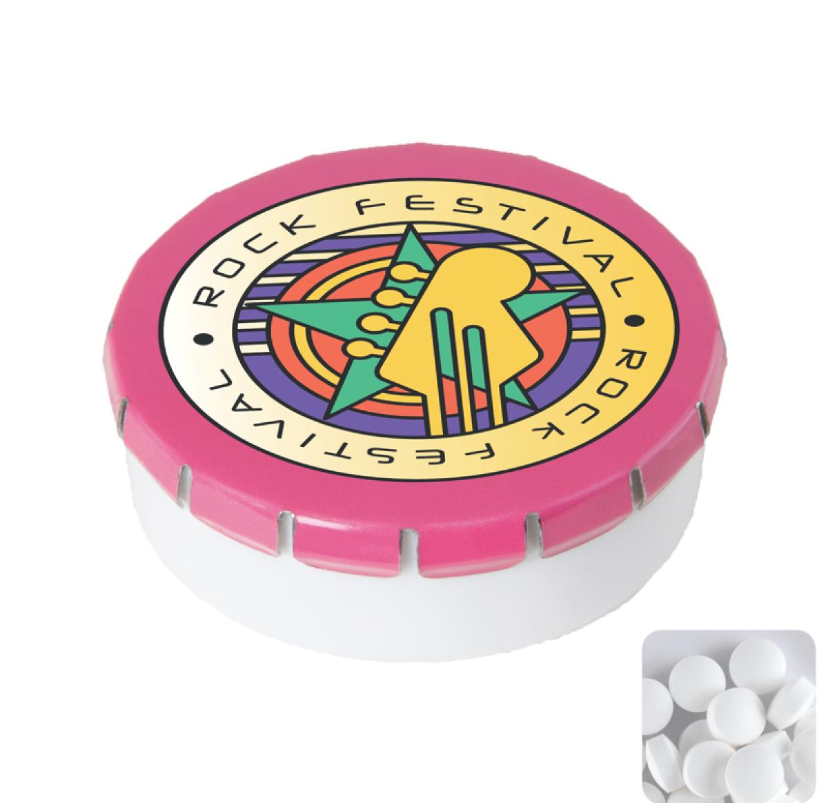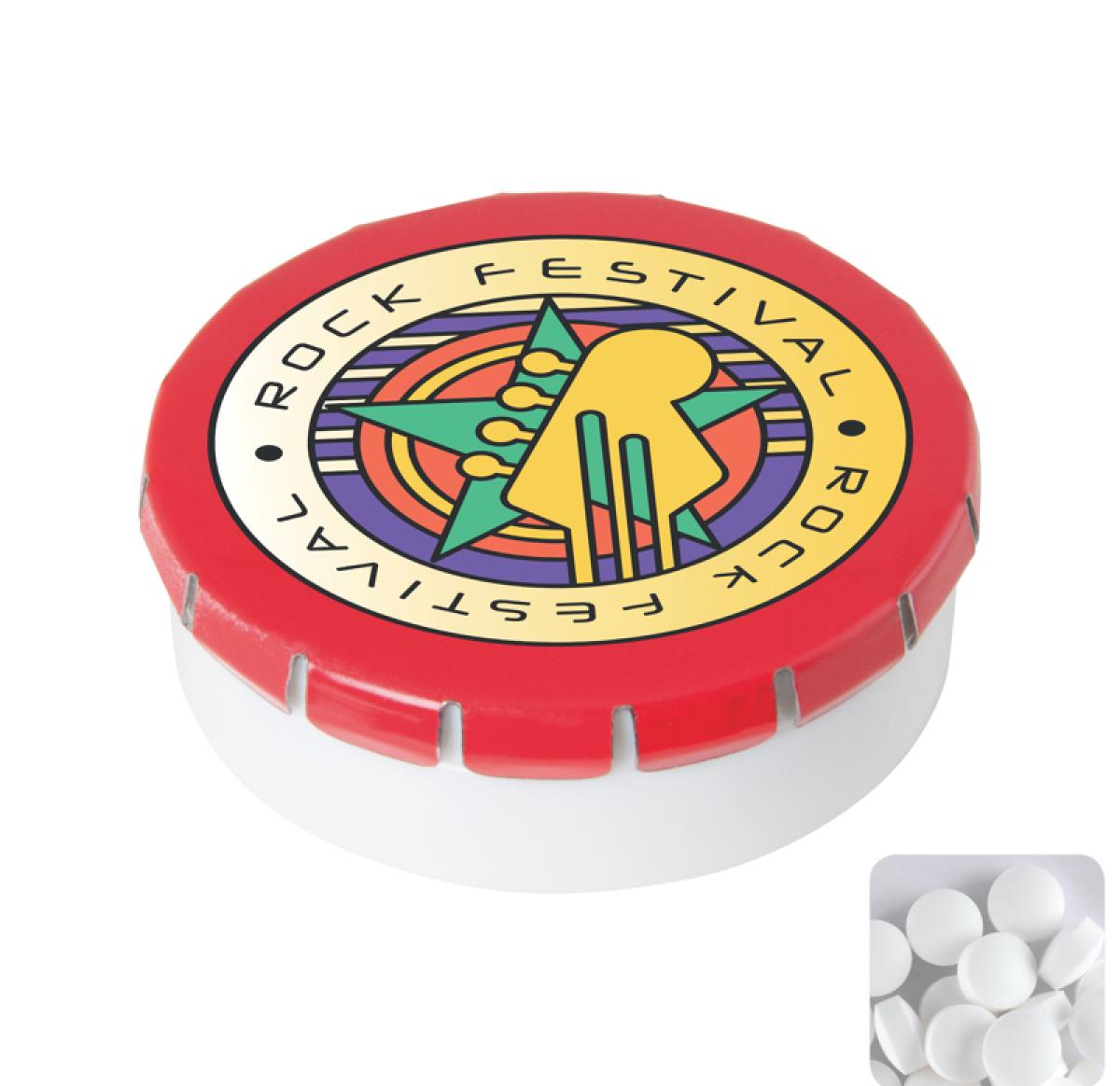 Branded Round Click Plastic Pots With Sugar Free Mints