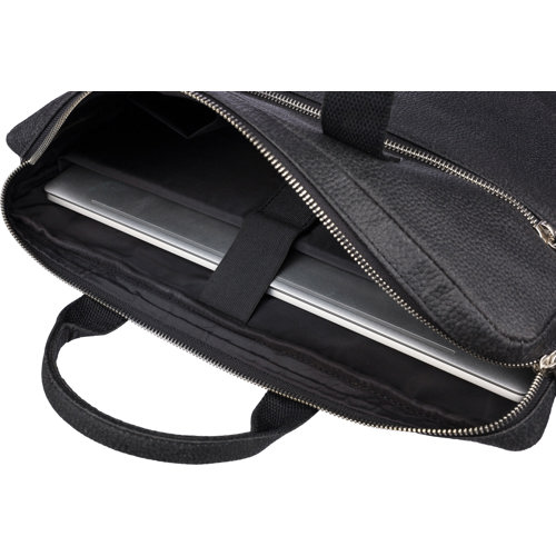 Laptop bag (15 inch) with zipped pockets on the front and top and a padded laptop pocket with Velcro closure. Material composition: 50% cotton, 30% tomato, 20% biopolymer.