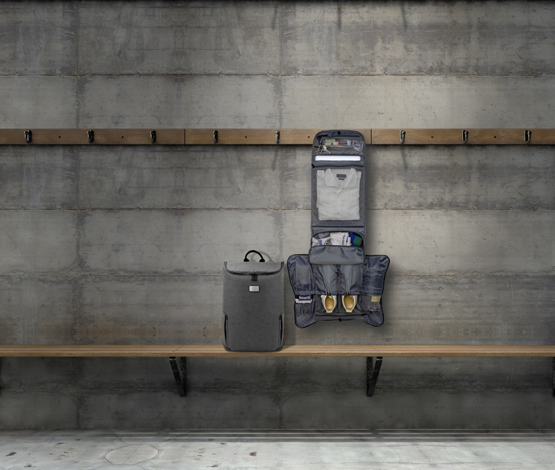 The sustainable and lightweight backpack is the ultimate two-in-one travel companion, converting easily from a backpack to a garment organiser. Made from resilient and water-resistant Touring Fabric, it's spacious enough to carry a complete outfit, shoes, and other essentials, perfect for weekend getaways or business trips. With hidden pockets for convenience, it also features padded compartments for a 15.6' laptop, a trolley strap, an anti-theft pocket, and reflective details, making it ideal for daily commutes and travel in style.. Made from 13 recycled PET bottles