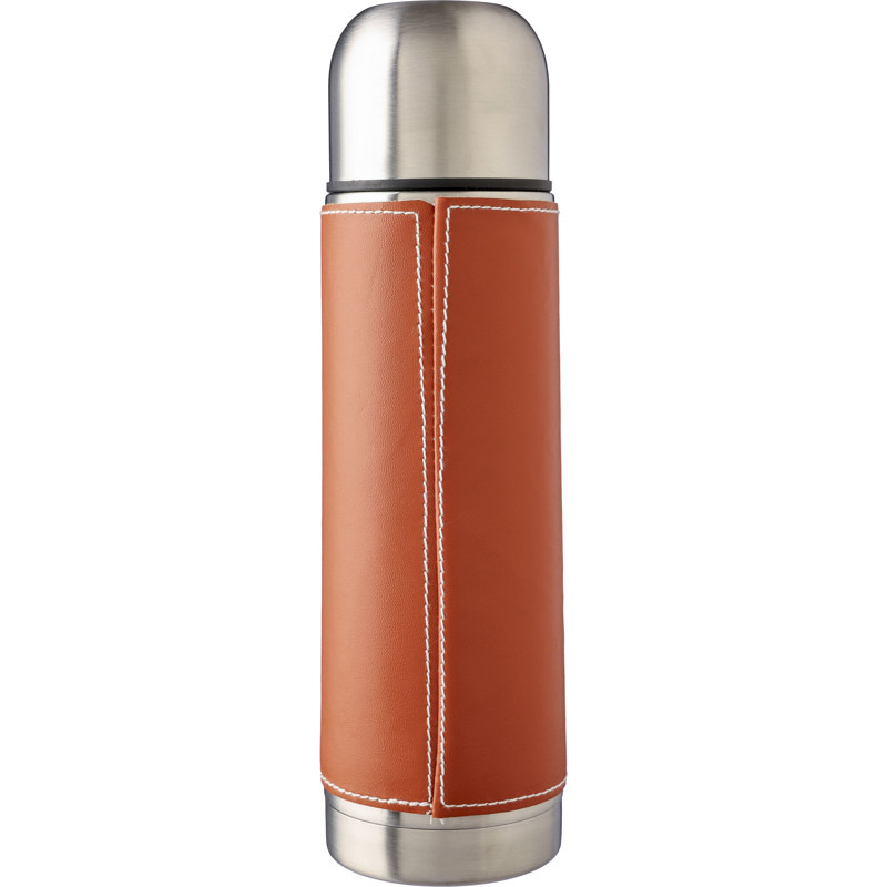Stainless steel, PU covered flask. Individually packaged in a brown cardboard box.