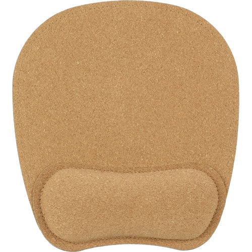 Ergonomic cork mouse mat with wrist support and anti-slip base.