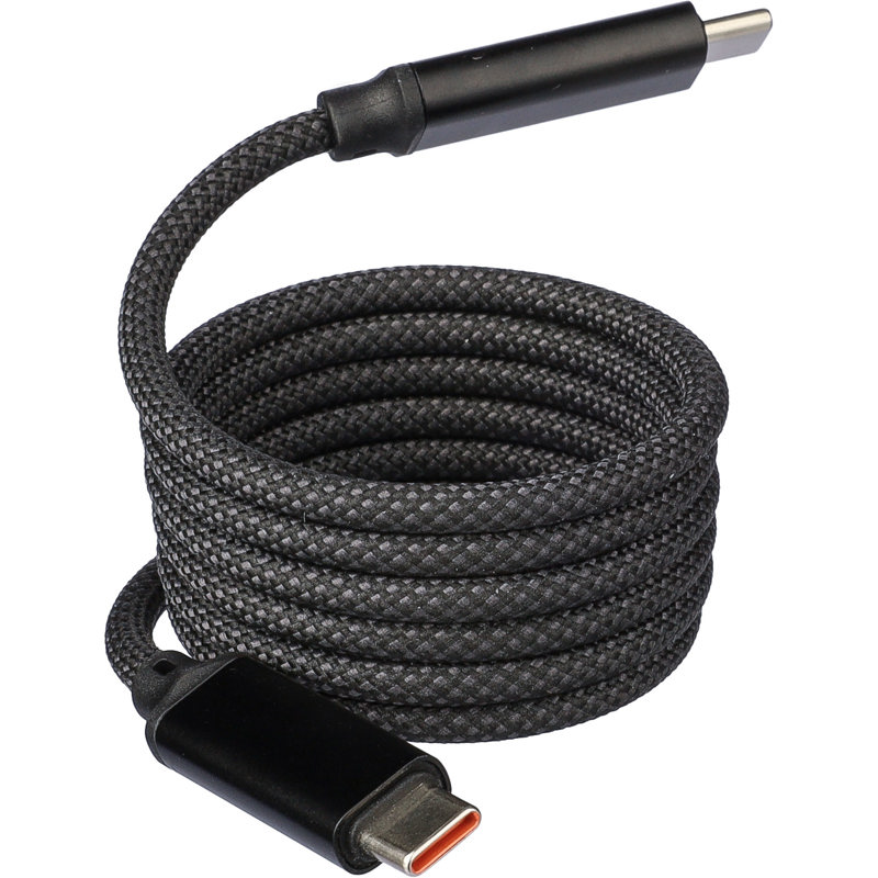 Type-C to Type-C data and charging cable with a length of 1 metre. Data speed of 240 Mbps. The built-in magnet allows the cable to roll up automatically in a structured way. 240 Mbps data speed / 60W charging output. Individually packaged in a brown cardboard gift box.