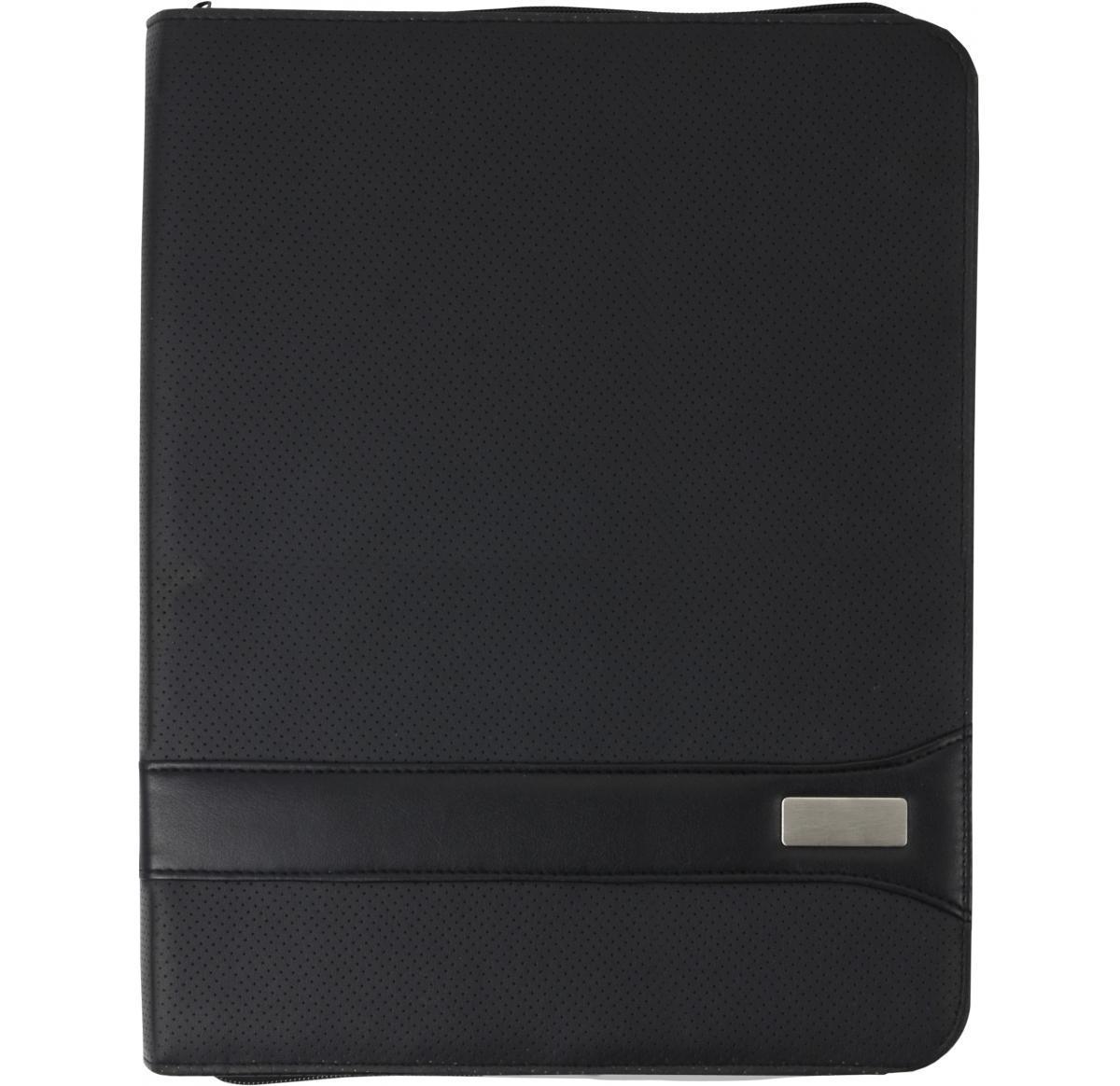 A4 Zipped PVC folder with two large internal pockets and four small credit card size pockets, pen loop and thirty page lined note pad.