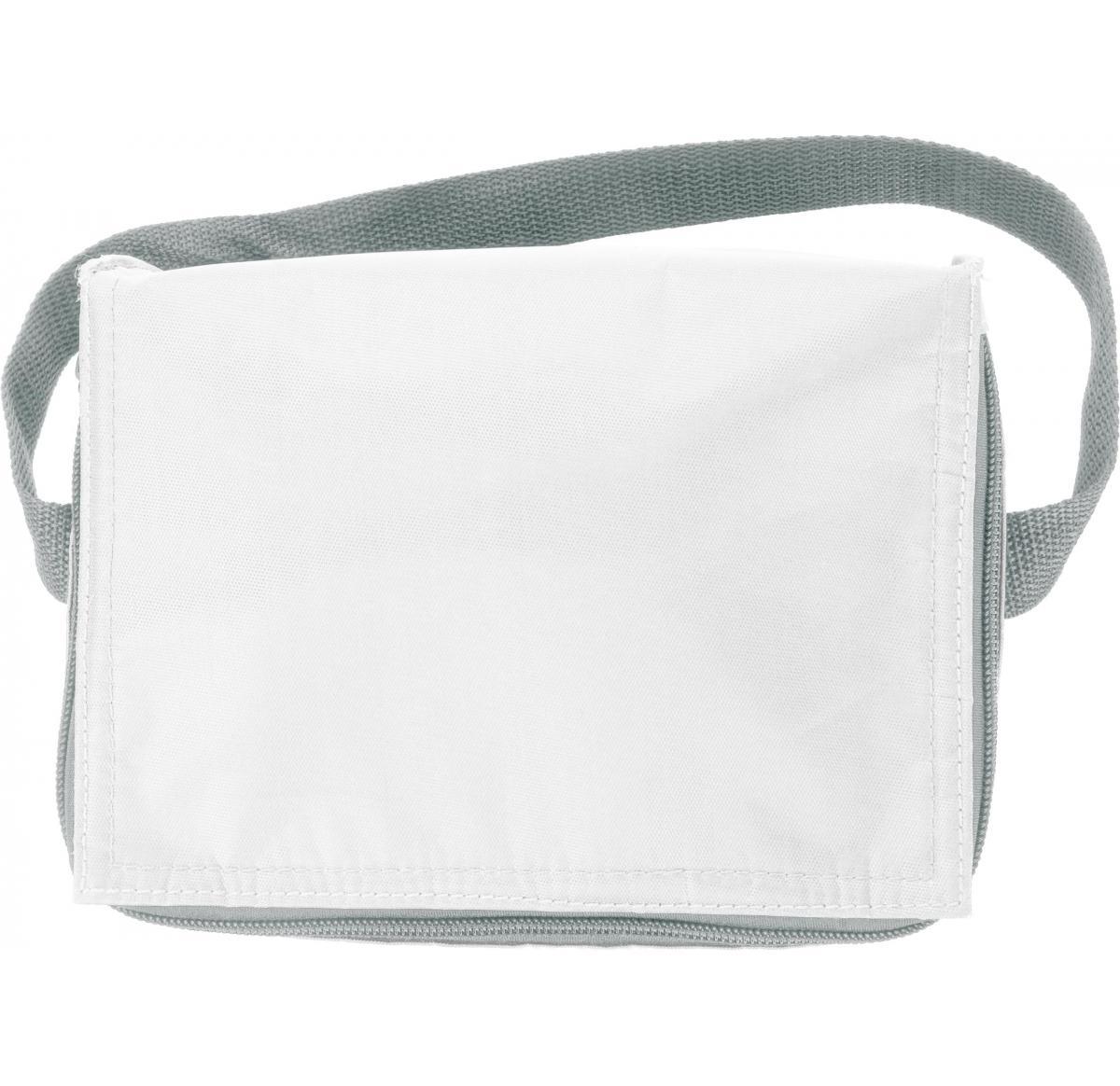 Six can 420d polyester cooler bag with a carry handle and a zipped main compartment.