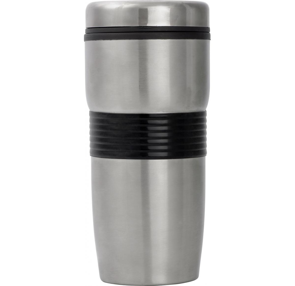 500ml Stainless steel double walled travel tumbler with a silicone centre band.