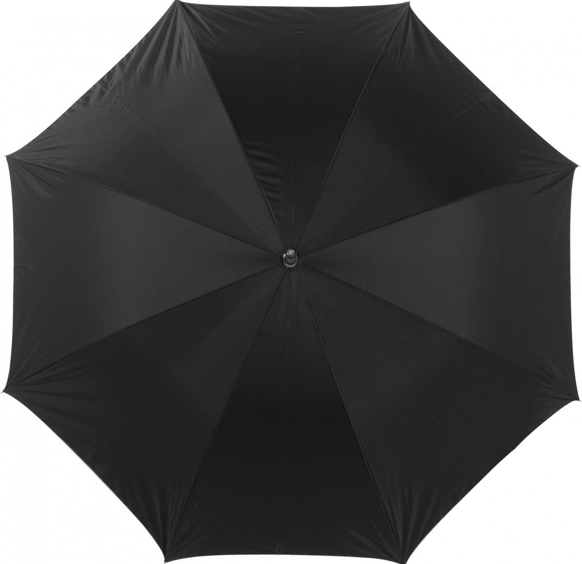 Automatic opening umbrella with 210t polyester fabric with silver coloured underside, metal frame, foam handle and a push button closing.