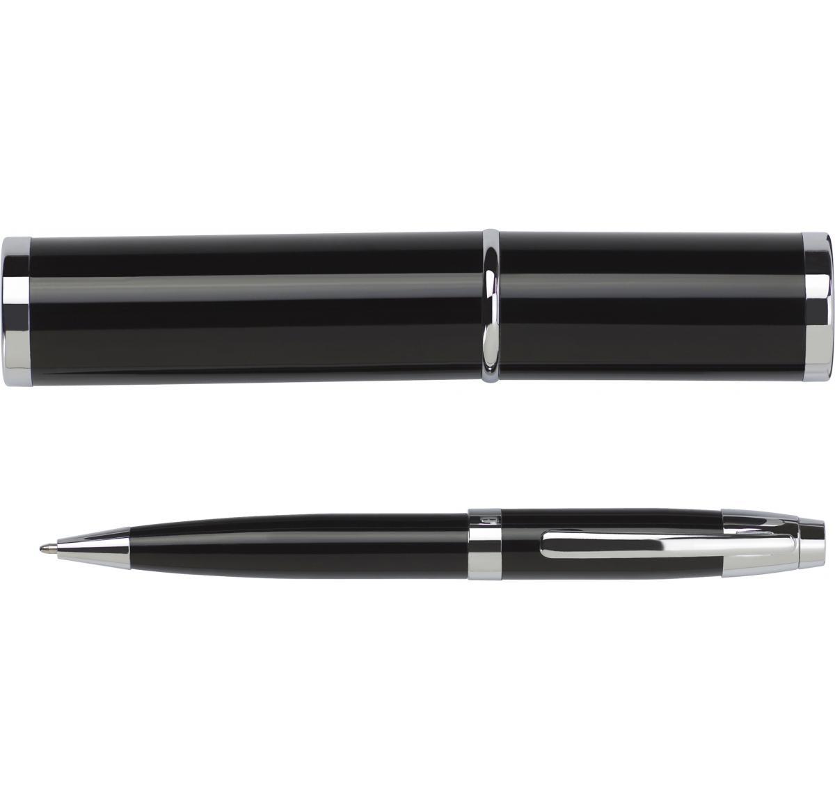 Metal ballpen with silver trim parts and black ink, supplied in a matching tube.