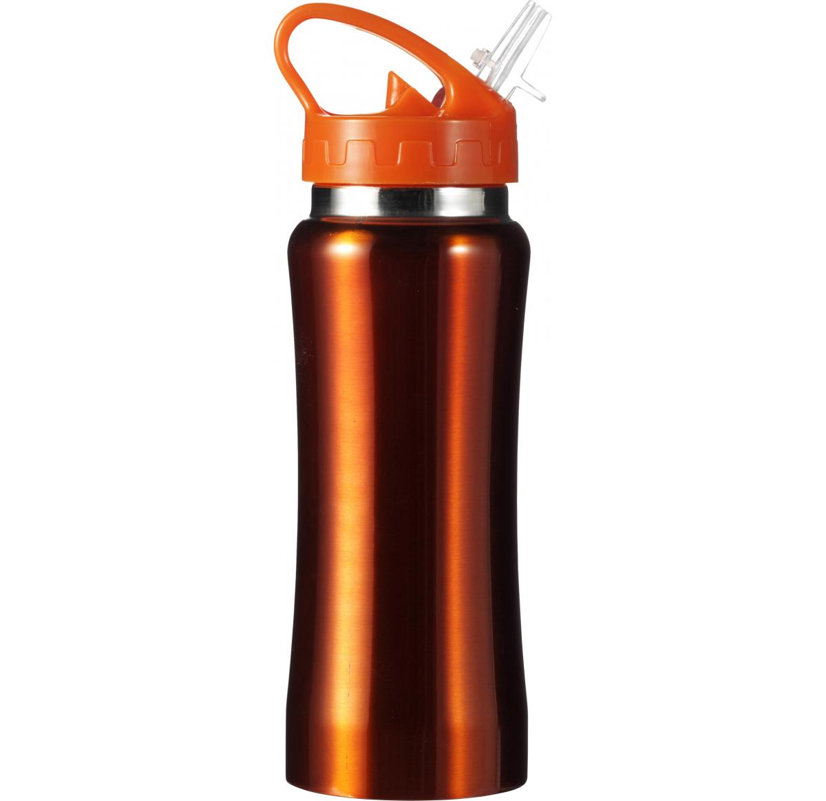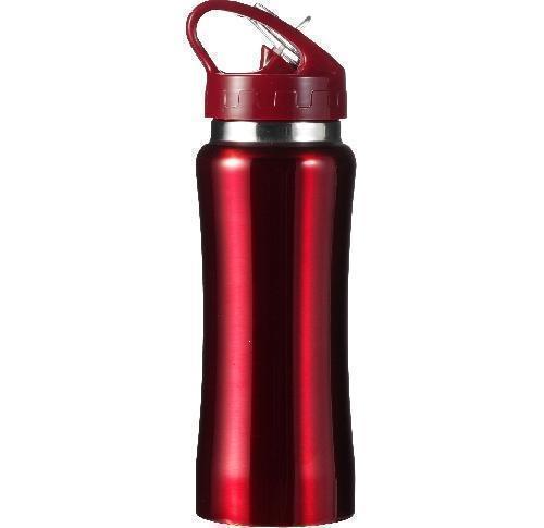 Stainless steel 600ml drinking bottle with metallic plastic exterior.