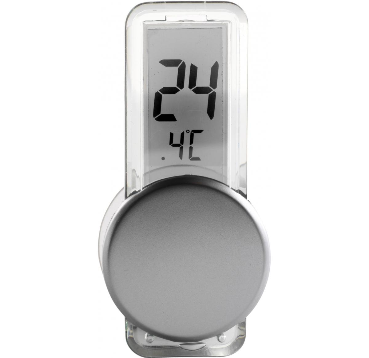 Plastic LCD thermometer with a suction cap, examines the temperature of the environment automatically six times per minute.