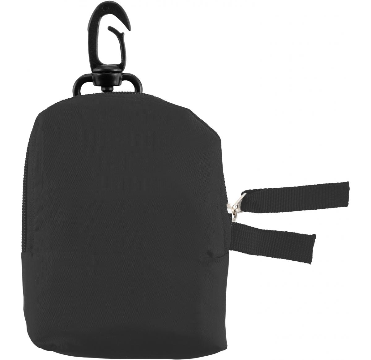 Foldable polyester carrying/shopping bag (190T) in an attached pouch with a belt clip.