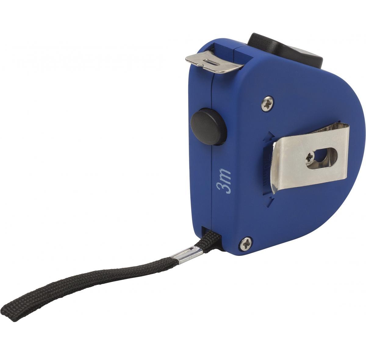5m metric/imperial tape measure in a soft feel rubber casing with lock, carry strap and belt clip.