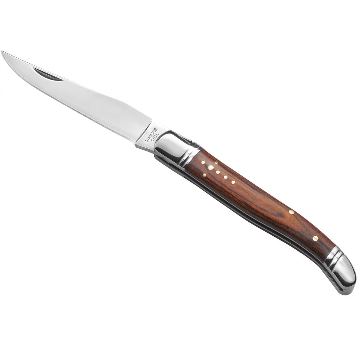 One piece steel and pakkawood pocket knife which is a material of exceptional quality and long lasting beauty.
