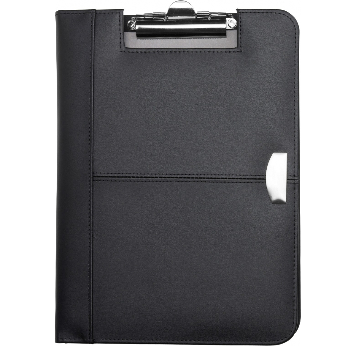 Bonded leather folder with an eight digit calculator and three internal pockets, pen loop and thirty page lined writing pad.