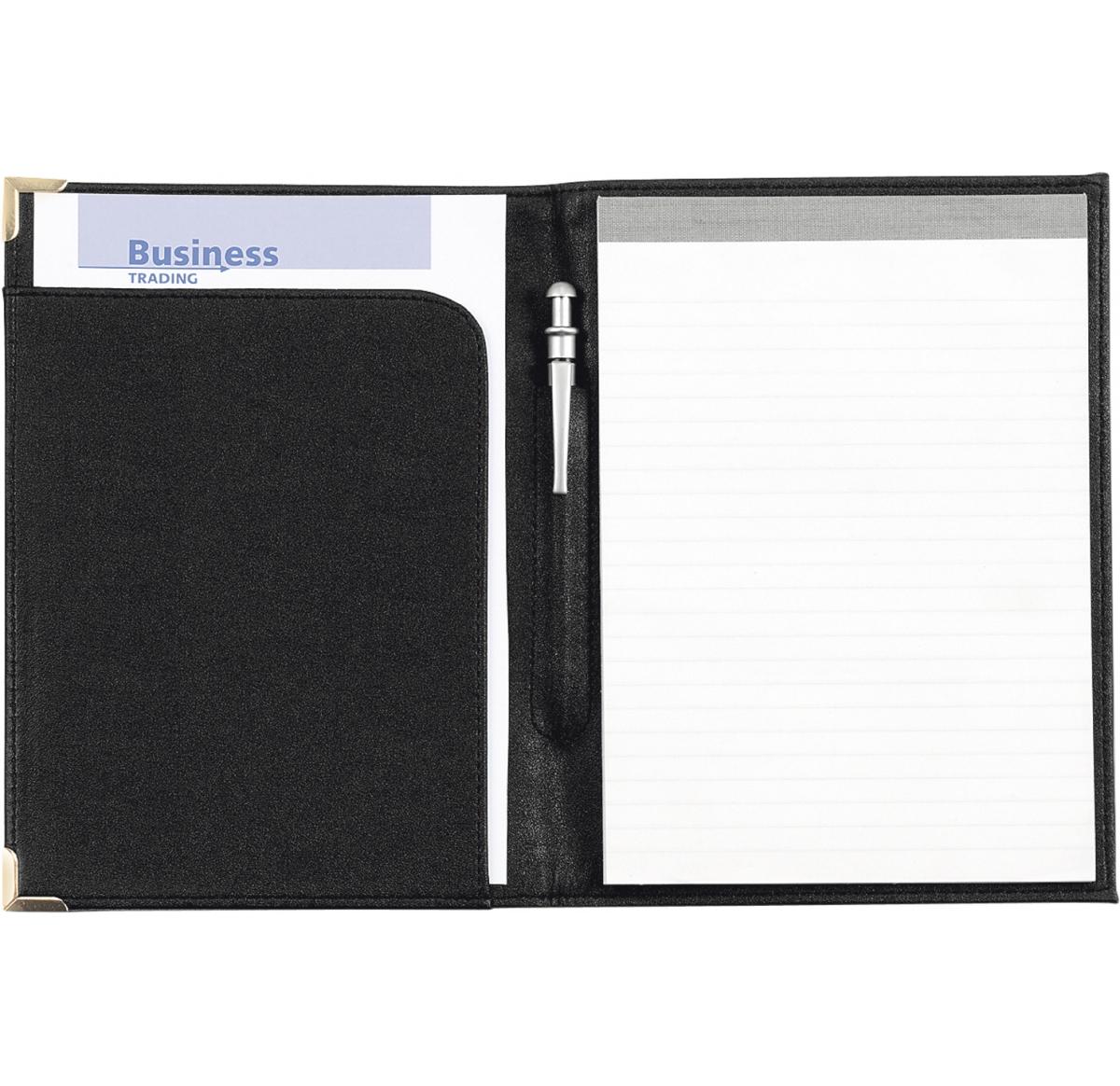 A5 Conference folder in a PU material, note pad (item code 8500) & pens not included, colours: blue/silver gilt corners, black/gold gilt corners.