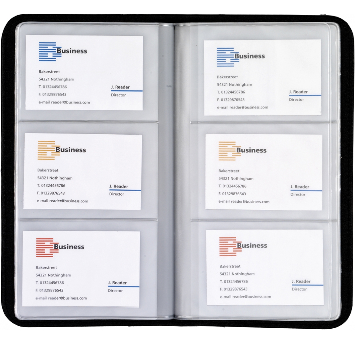 Deluxe bonded leather business card holder which holds seventy two cards.