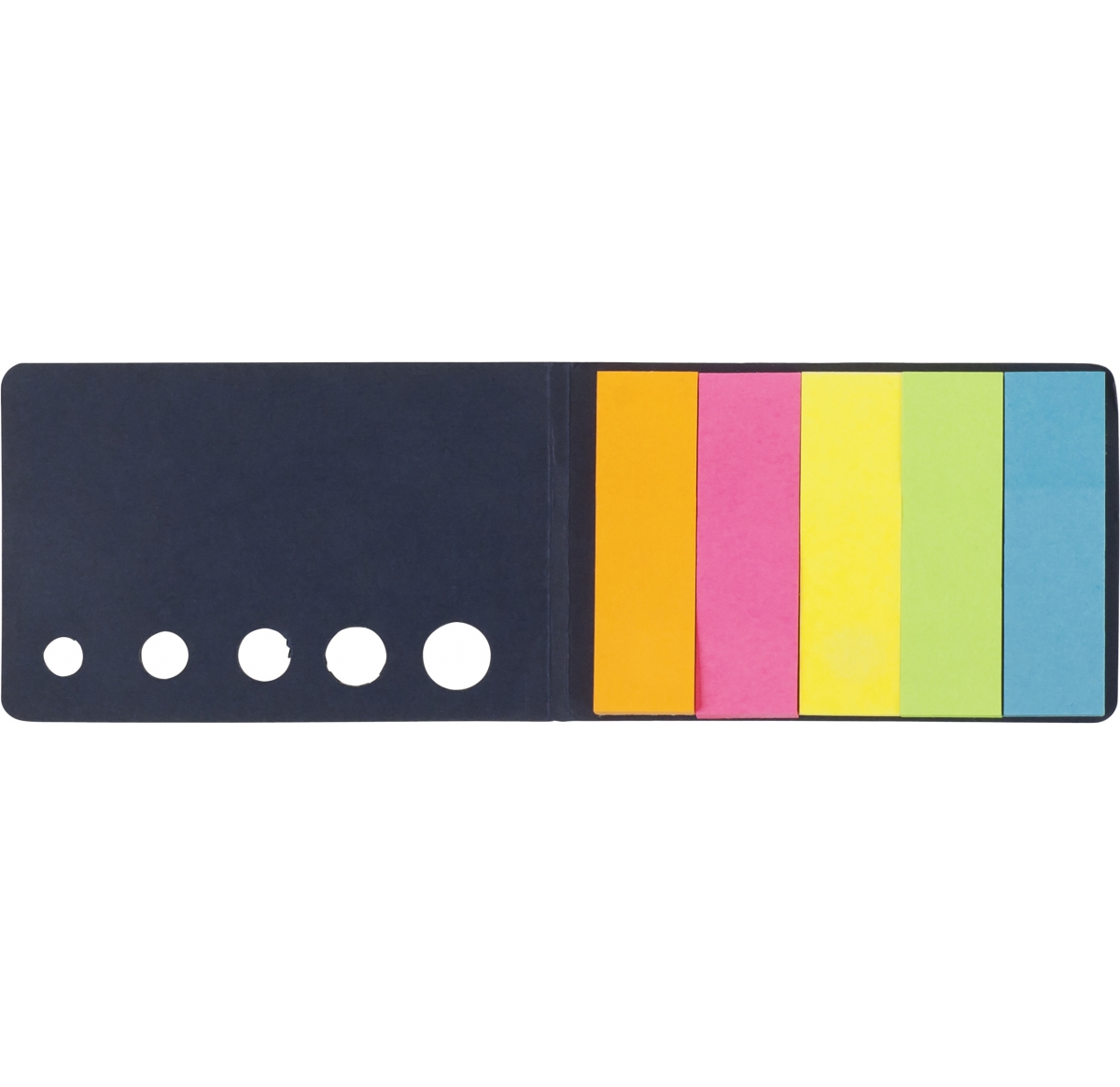 Card cover holding five different coloured self adhesive memos, each with twenty sheets.